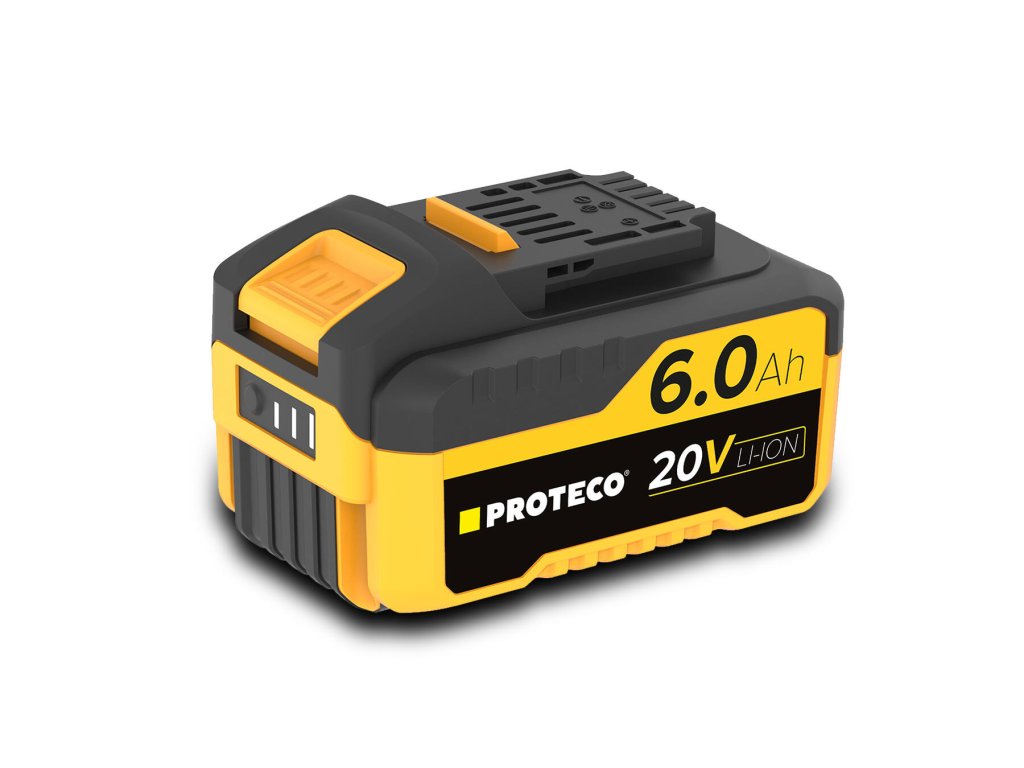 Li-Ion akumulátor PROTECO 20 V / 6,0 Ah Tato lithiová baterie o napětí 20 V a kapacitě 6000 mAh je spolehlivým zdrojem energie pro veškeré akumulátorové nářadí z řady PROTECO 20 V. Díky vysoké kapacitě poskytuje delší dobu provozu na jedno nabití, což oceníte při náročnějších úkolech doma, na zahradě i v dílně. Hlavní výhody: - Vysoká kapacita 6,0 Ah – delší výdrž bez přerušování práce - Moderní Li-Ion technologie – žádný paměťový efekt, nízké samovybíjení - Odolné provedení – ideální pro pravidelné i profesionální použitíPři platbě penězi je možné dostat zajímavou nabídku neboli akční cenu a tu Vám rádi uděláme když napíšete na info@megabike-cyklo.cz