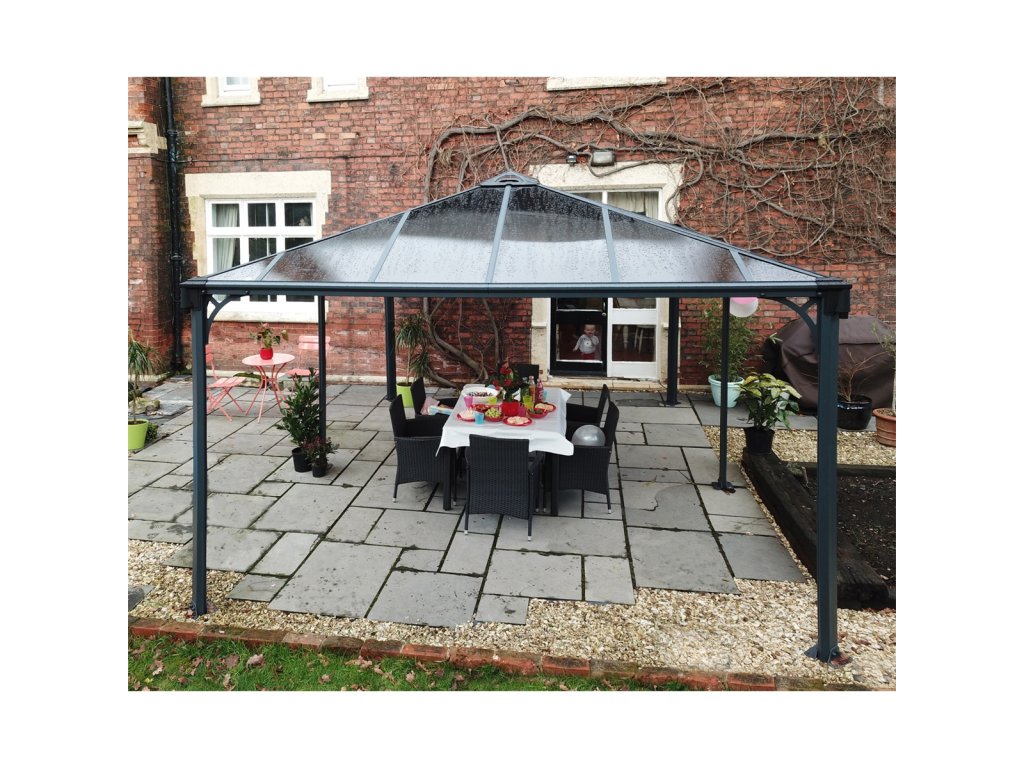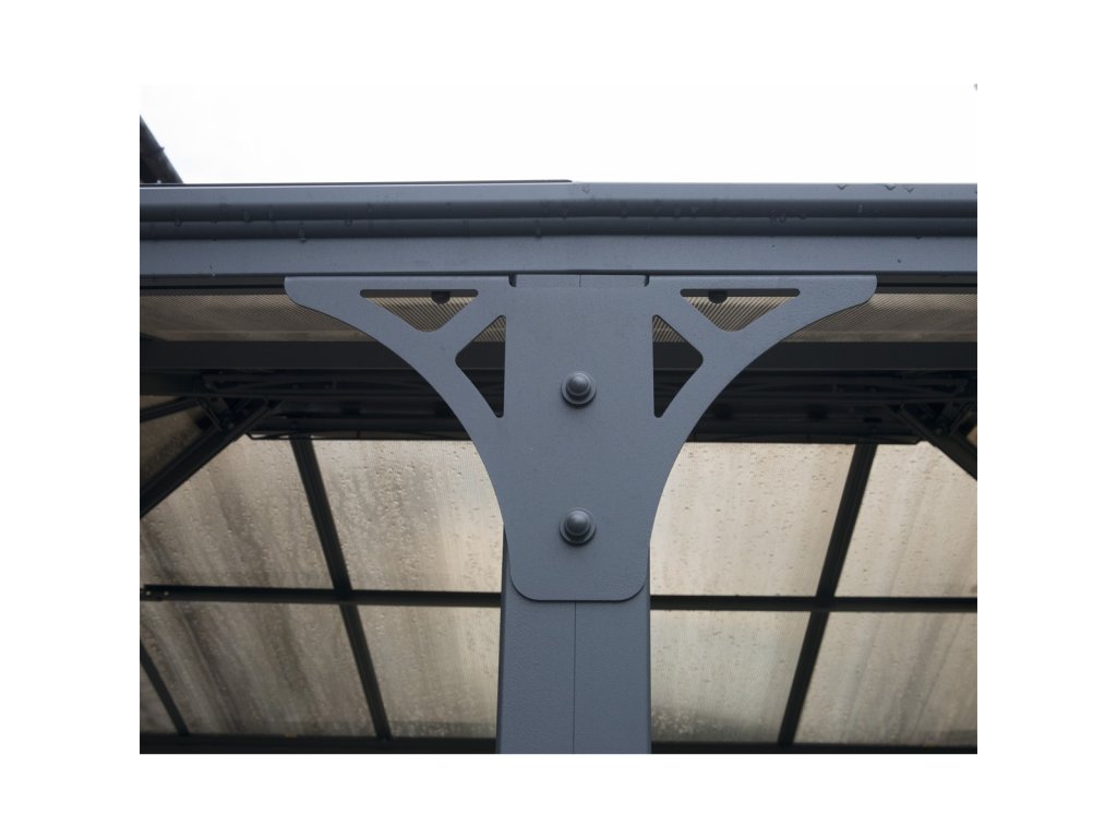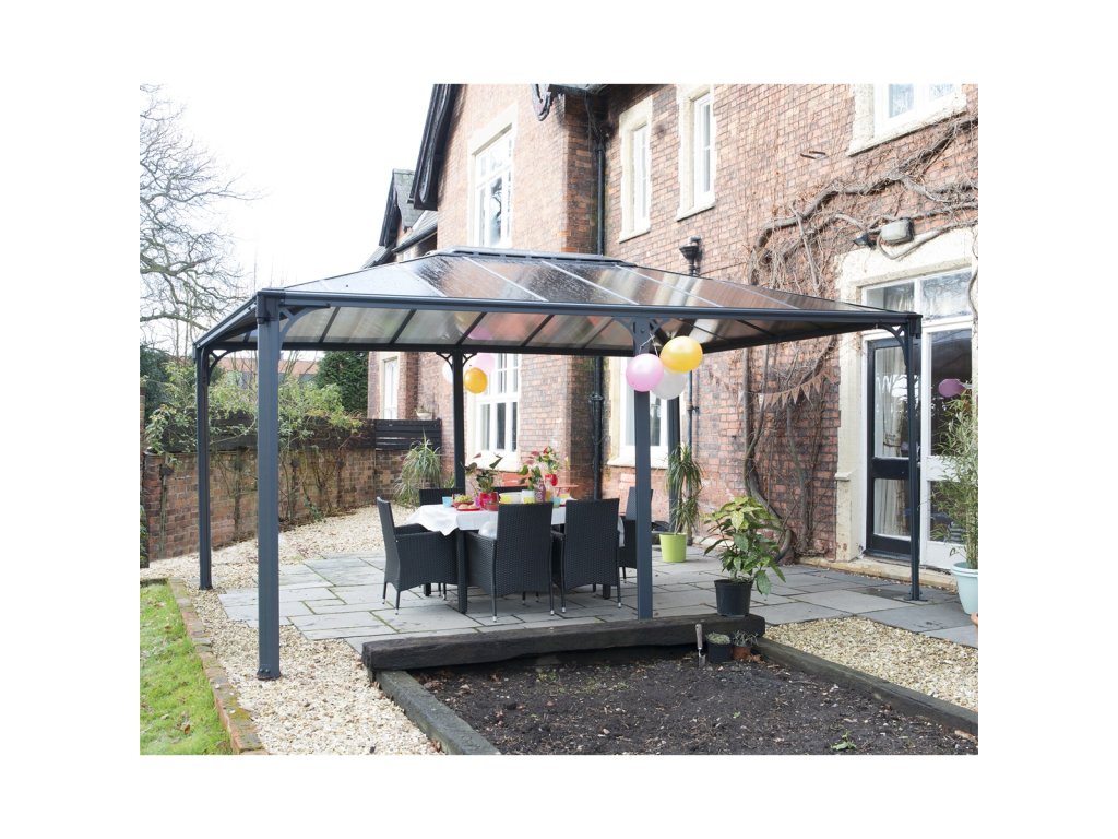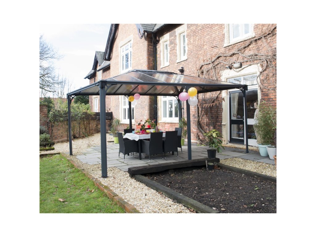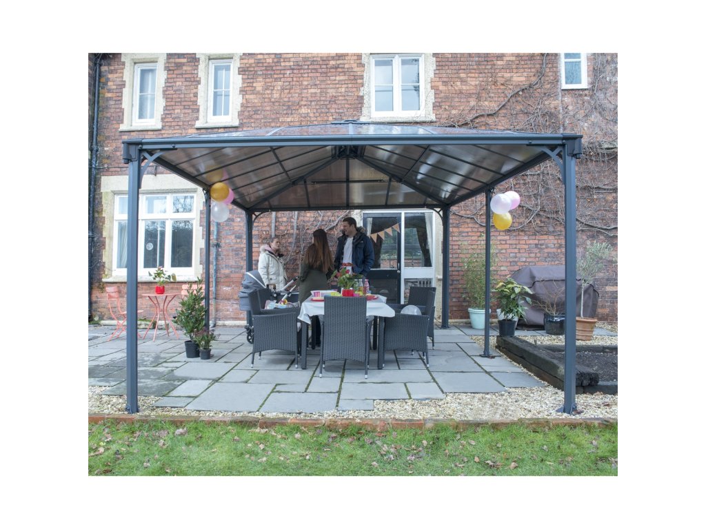 Martinique 5000 - zahradní hliníkový altán S obdélníkovým zahradním altánem Martinique získáte elegantní a prostorné zastřešení vašeho venkovního posezení Ideální pro zastřešení venkovního posezení, grilu nebo venkovní vířivky Robustní, bezúdržbová a korozi odolná vyztužená konstrukce tvořená rámem z hliníkových profilů a pozinkovaných ocelových spojovacích článků V podstatě nezničitelné střešní panely z 6 mm silného dvoukomůrkového polykarbonátu dokonale chrání před deštěm, kroupami, sněhem i škodlivým UV zářením Šedý odstín panelů propouští dostatek světla během zamračených dnů a zároveň dokáže vykouzlit příjemný stín při jasné obloze Integrovaný systém okapů skvěle odvádí vodu (O 40 mm) Integrovaný ventilační otvor podporuje proudění vzduchu a odvádí kouř při grilování Integrovaný systém posuvných háčků pro možnost zavěšení závěsu nebo sítě proti hmyzu Snadné sestavení svépomocí pouze ve dvou osobách, není potřeba nic vrtat, řezat, spojovací materiál je součástí balení LED osvětlení, závěs a síť proti hmyzu lze dokoupit jako příslušenství Kotevní prvky součástí dodávky Ventilační otvor Posuvné háčky na zavěšení závěsu Integrovaný systém pro odvod vody Pevná bezúdržbová konstrukcePři platbě penězi je možné dostat zajímavou nabídku neboli akční cenu a tu Vám rádi uděláme když napíšete na info@megabike-cyklo.cz