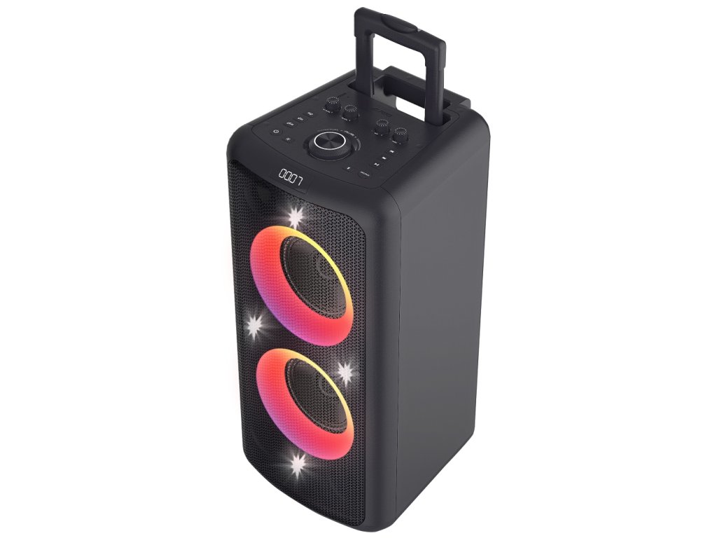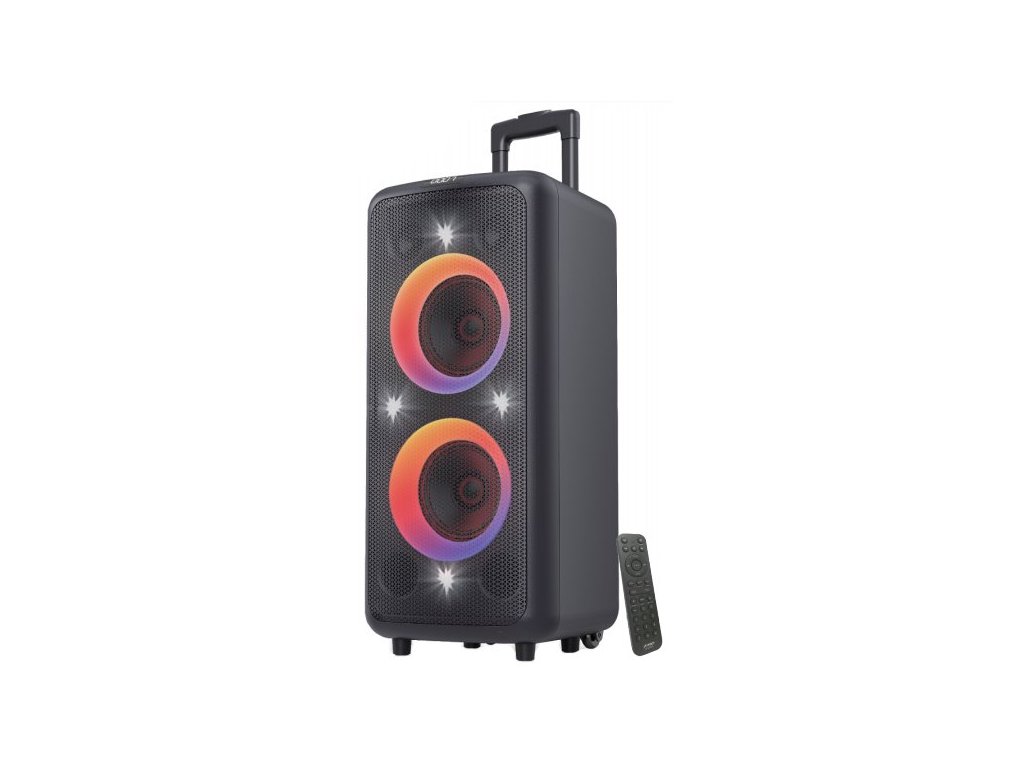 Přenosný reproduktor s výkonem 100 W a barevným LED podsvícením. Přehrávat hudbu je možné jak drátově skrze optický a AUX vstup, tak i bezdrátově skrze Bluetooth. Samozřejmostí je port USB pro přehrávání z flashdisku. Díky vestavěné baterii lze přehrávat hudbu až 6 hodin bez nutnosti připojení na elektrickou síť. Součástí balení je dálkové ovládání a bezdrátový mikrofon.