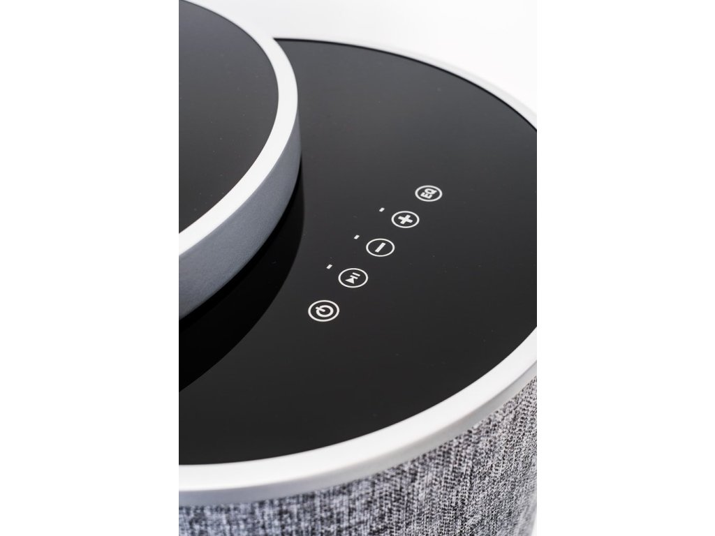 VIBE můžete použít také k dobíjení telefonů. Slouží k tomu jak bezdrátové dobíjení v horní desce reproduktoru, tak USB výstup na zadní straně reproduktoru. Kromě dobíjecí spirály najdete na horní desce také dotyková tlačítka pro nastavení hlasitosti, ovládání přehrávání nebo výběr režimu ekvalizéru.