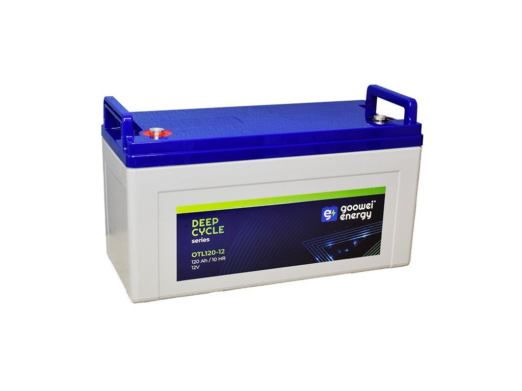 GOOWEI ENERGY OTL120-12Olověný 12 V (120 Ah) akumulátor v provedení VRLA GEL navržený pro hluboké vybíjení i cyklické namáhání. Je tak vhodný pro záložní systémy.