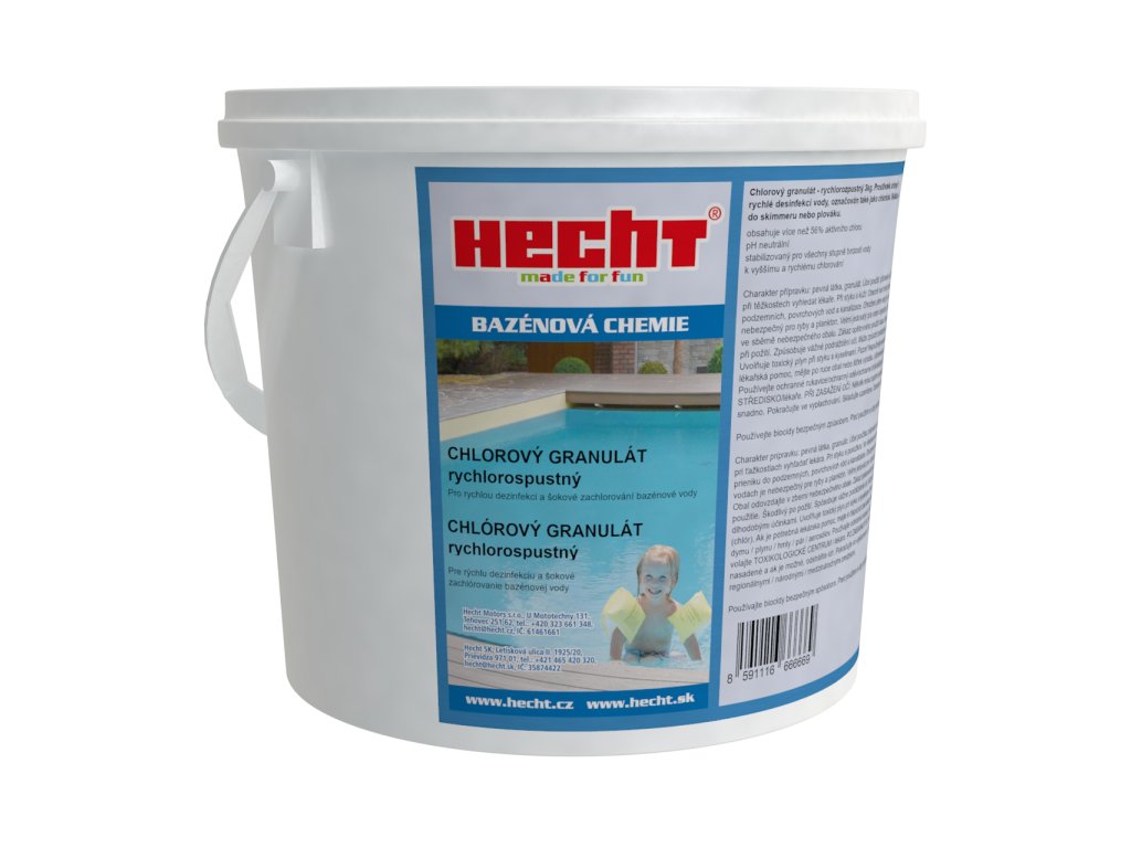 Chlorový granulát - rychlorozpustný 3kg. Prostředek určený k rychlé desinfekci vody, označován také jako chloršok. Vkládá se do skimmeru nebo plováku. obsahuje více než 56% aktivního chloru pH neutrální stabilizovaný pro všechny stupně tvrdosti vody k vyššímu a rychlému chlorování Charakter přípravku: pevná látka, granulát. Účel použití: přípravek na údržbu vody v bazénech. Při nadýchání: dopravit postiženého na čerstvý vzduch, při těžkostech vyhledat lékaře. Při styku s kůží: Obecně není tento produkt pro pokožku dráždivý. Vliv na životní prostředí: Zabraňte průniku do podzemních, povrchových vod a kanalizace. Ohrožení pitné vody je možné již při malém průniku do podzemních vod. V povrchových vodách je nebezpečný pro ryby a plankton. Velmi jedovatý pro vodní organizmy. Dodržujte bezpečnostní pokyny a zásady ochrany zdraví při práci. Obal odevzdejte ve sběrně nebezpečného obalu. Zákaz opětovného použití obalu. Směs může být použita pouze pro účely stanovené v návodu k použití. Zdraví škodlivý při požití. Způsobuje vážné podráždění očí. Může způsobit podráždění dýchacích cest. Vysoce toxický pro vodní organismy, s dlouhodobými účinky. Uvolňuje toxický plyn při styku s kyselinami. Pozor! Nepoužívejte společně s jinými výrobky. Může uvolňovat nebezpečné plyny (chlor). Je-li nutná lékařská pomoc, mějte po ruce obal nebo štítek výrobku. Uchovávejte mimo dosah dětí. Zamezte vdechování prachu/dýmu/plynu/mlhy/par/aerosolů. Používejte ochranné rukavice/ochranný oděv/ochranné brýle/obličejový štít. PŘI POŽITÍ: Necítíte-li se dobře, volejte TOXIKOLOGICKÉ INFORMAČNÍ STŘEDISKO/lékaře. PŘI ZASAŽENÍ OČÍ: Několik minut opatrně vyplachujte vodou. Vyjměte kontaktní čočky, jsou-li nasazeny a pokud je lze vyjmout snadno. Pokračujte ve vyplachování. Skladujte uzamčené. Odstraňte obsah/obal v souladu s místními/regionálními/národními/mezinárodními předpisy. Používejte biocidy bezpečným způsobem. Před použitím si vždy přečtěte označení a informace o přípravku. Klasifikace v souladu s nařízením (ES) č. 1272/2008 GHS09 životní prostředí Aquatic Acute 1 H400 Vysoce toxický pro vodní organismy. Aquatic Chronic 1 H410 Vysoce toxický pro vodní organismy, s dlouhodobými účinky. GHS07 Acute Tox. 4 H302 Zdraví škodlivý při požití. Eye Irrit. 2 H319 Způsobuje vážné podráždění očí. STOT SE 3 H335 Může způsobit podráždění dýchacích cest.Při platbě penězi je možné dostat zajímavou nabídku neboli akční cenu a tu Vám rádi uděláme když napíšete na info@megabike-cyklo.cz