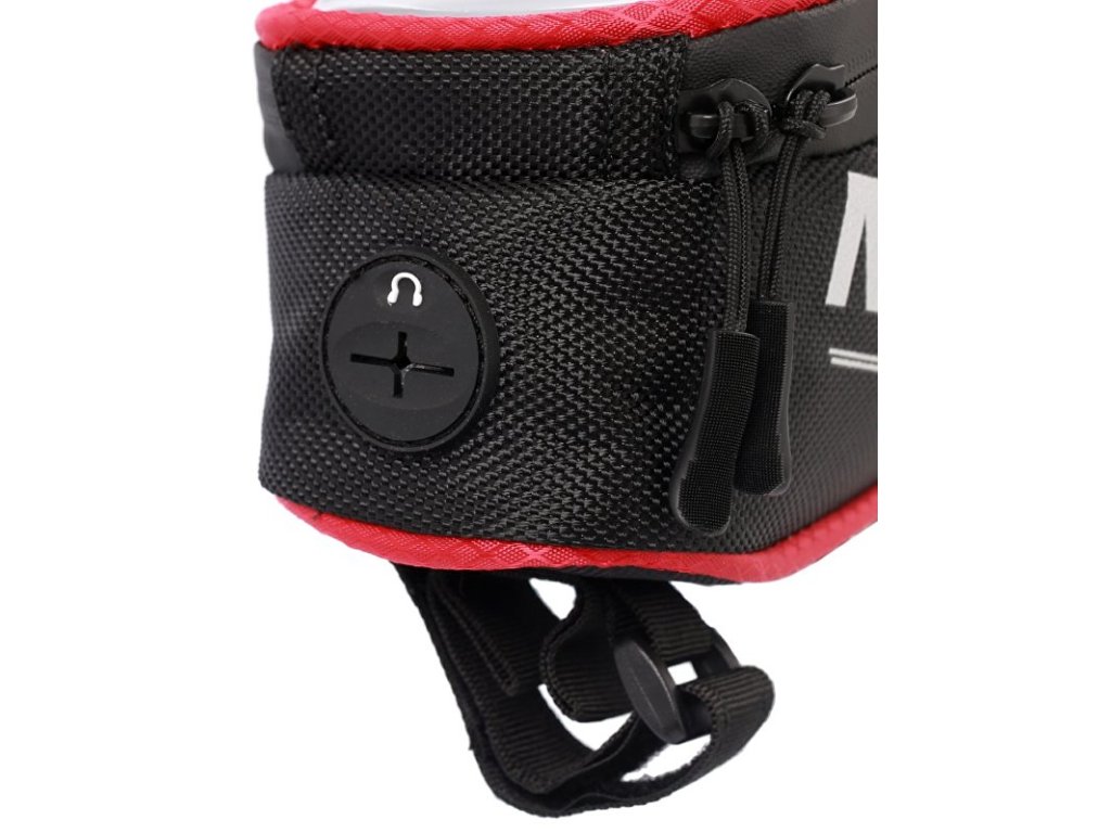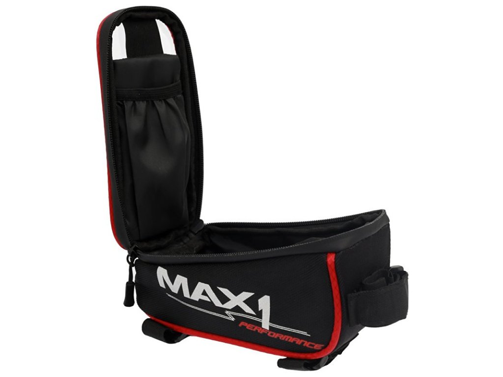 Kompaktní brašna MAX1 na rámovou trubku s kapsou uzpůsobenou pro mobilní telefon.Gumová membrána pro umístění sluchátek ve spodní části brašny. Pasuje na většinu standardních rámů.