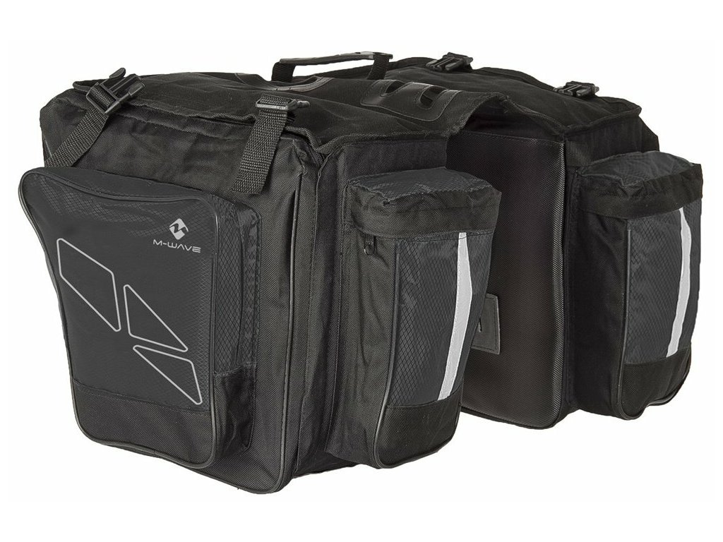 brašna na nosič M Wave s vynikající variabilitou a snadným uchycením na nosič, dvě postranní brašny jsou oddělitelné od vrchního dílu, obě samostatné části lze nosit odděleně v ruce nebo přes rameno, bezpečná konstrukce, kvalitní vodoodpudivý materiál, každá brašna má 1 hlavní a 1 vnější kapsu, objem 32 l, reflexní nášivky pro zvýšení bezpečnosti, vhodným doplňkem je pláštěnka na trojbrašnu z lehkého nepromokavého materiálu,Distributor: Cyklomax, spol. s r.o., Pardubická 504, 533 52 Srch. E-mail: info@cyklomax.cz