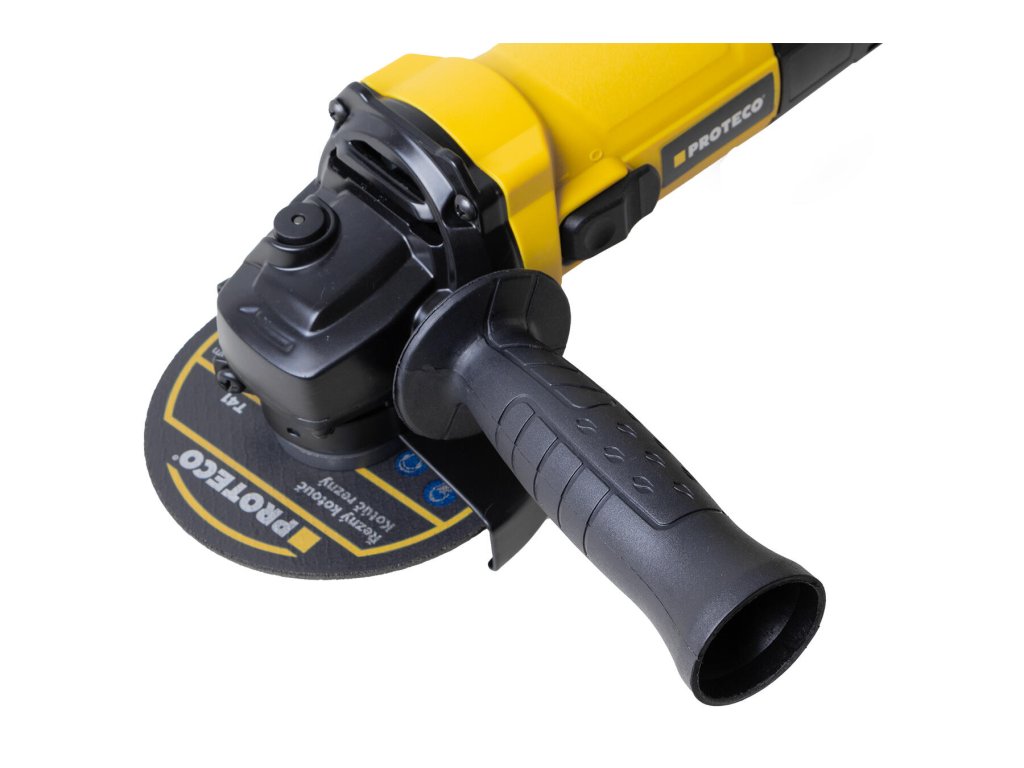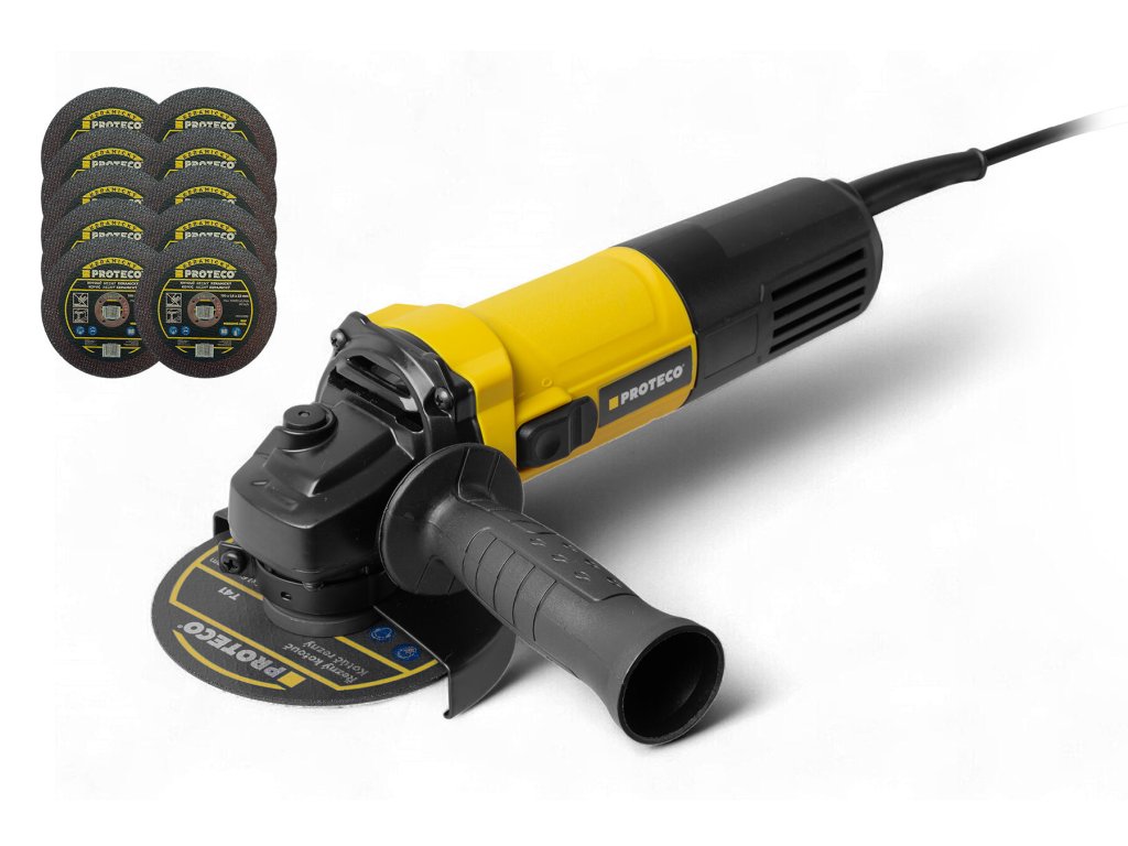 Úhlová bruska 115 mm, 850 W PROTECO – spolehlivý pomocník pro přesnou práci Tato kompaktní úhlová bruska je skvělou volbou pro uživatele, kteří hledají lehký, ale výkonný nástroj pro každodenní použití. Díky motoru o příkonu 850 W si hravě poradí s broušením, řezáním i drobnějším opracováním kovových součástí, plastu, betonu či kamene. Průměr kotouče 115 mm umožňuje přesné vedení řezu i v hůře přístupných místech, což ocení každý domácí kutil i řemeslník. Bruska je vybavena hlavní ergonomickou rukojetí a přídavnou boční rukojetí, kterou lze nastavit do dvou pozic pro lepší ovládání a komfort při práci. Díky nízké hmotnosti, dobrému vyvážení a kompaktním rozměrům je práce s bruskou bezpečná a neunavující. Ochranný kryt kotouče chrání uživatele před odlétávajícími částicemi a přispívá k celkové bezpečnosti. Tato bruska představuje ideální kompromis mezi přesností a rychlostí práce, což ocení jak domácí kutil, tak profesionál na stavbě. Klíčové vlastnosti: - Výkonný motor 850 W – ideální pro lehčí až středně náročné úkoly při údržbě a opravách - Průměr kotouče 115 mm – vhodný pro přesné řezy a broušení i v těžko dostupných místech - Otáčky naprázdno: 11 000 ot./min – rychlý a efektivní pracovní postup - Ergonomická rukojeť a přídavná rukojeť pro pohodlný a bezpečný úchop - Kompaktní tělo a nízká hmotnost – snadné ovládání a manipulace bez únavy - Závit vřetena: M14 – možnost použít běžné příslušenství dostupné na trhu - Robustní konstrukce – dlouhá životnost i při pravidelném používání - 10 ks keramických kotoučů s průměrem 115 mm ZDARMA - Náhradní uhlíky součástí balení!Při platbě penězi je možné dostat zajímavou nabídku neboli akční cenu a tu Vám rádi uděláme když napíšete na info@megabike-cyklo.cz