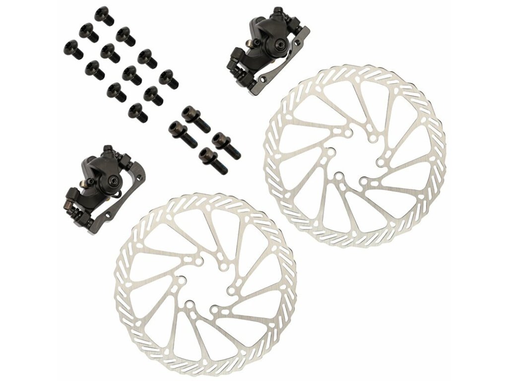 Kompletní sada mechanických kotoučových brzd přední+zadní včetně kotoučů.Sada obsahuje:
