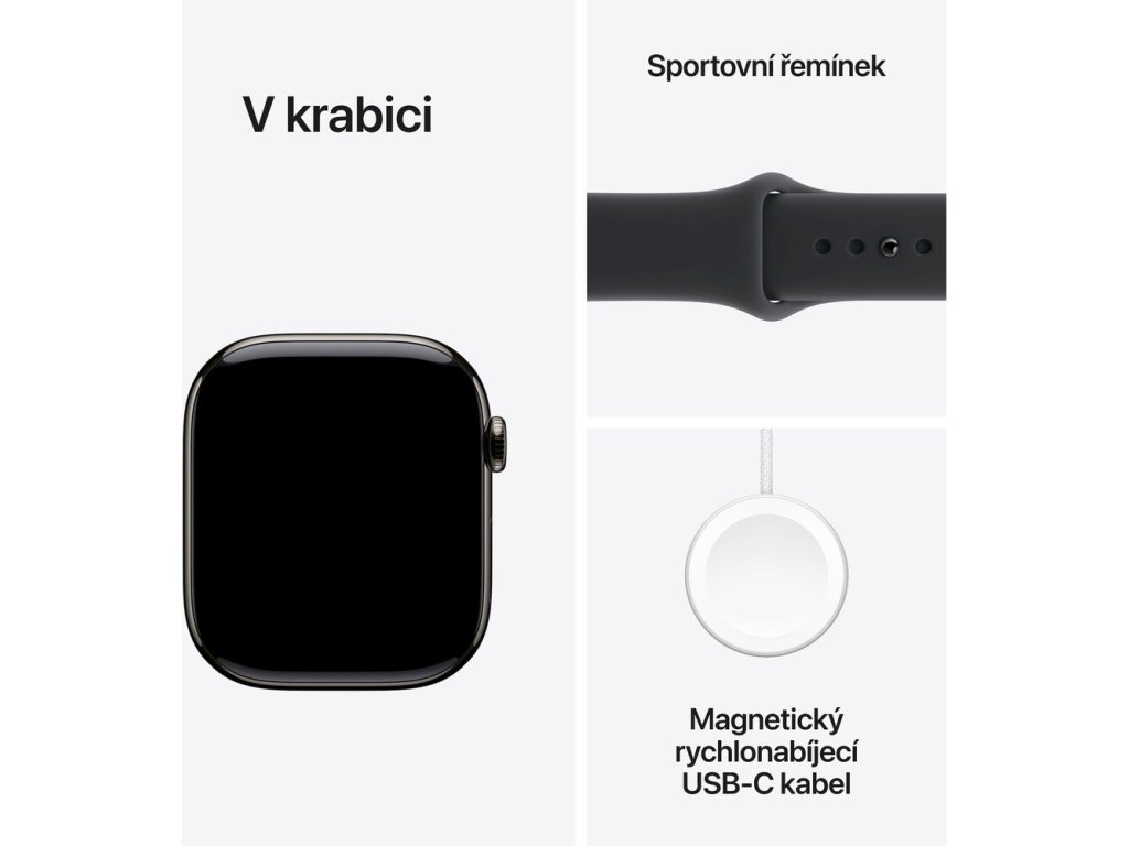 Apple Watch Series 11 Cellular (42mm) Břidlicově šedý titan s černým sportovním řemínkem S/M Nevíte kde uplatnit Benefity obecně, zeptej se info@megabike-cyklo.cz