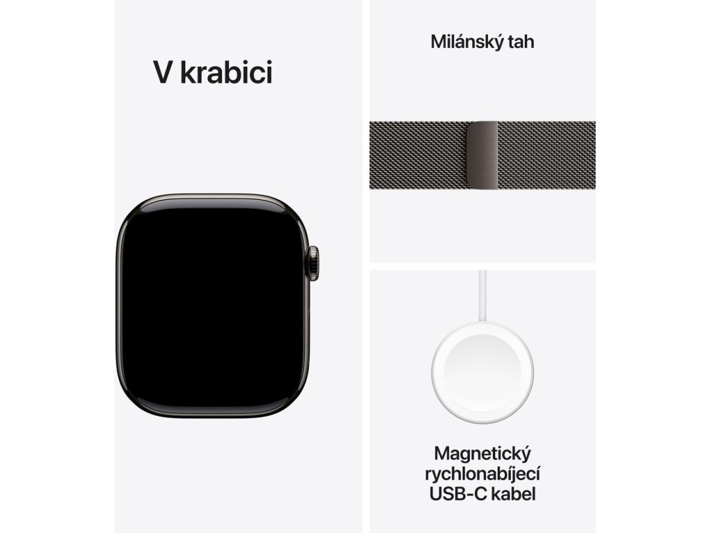 Apple Watch Series 11 Cellular (46mm) Břidlicově šedý titan s břidlicově šedým milánským tahem S/M Nevíte kde uplatnit Benefity obecně, zeptej se info@megabike-cyklo.cz