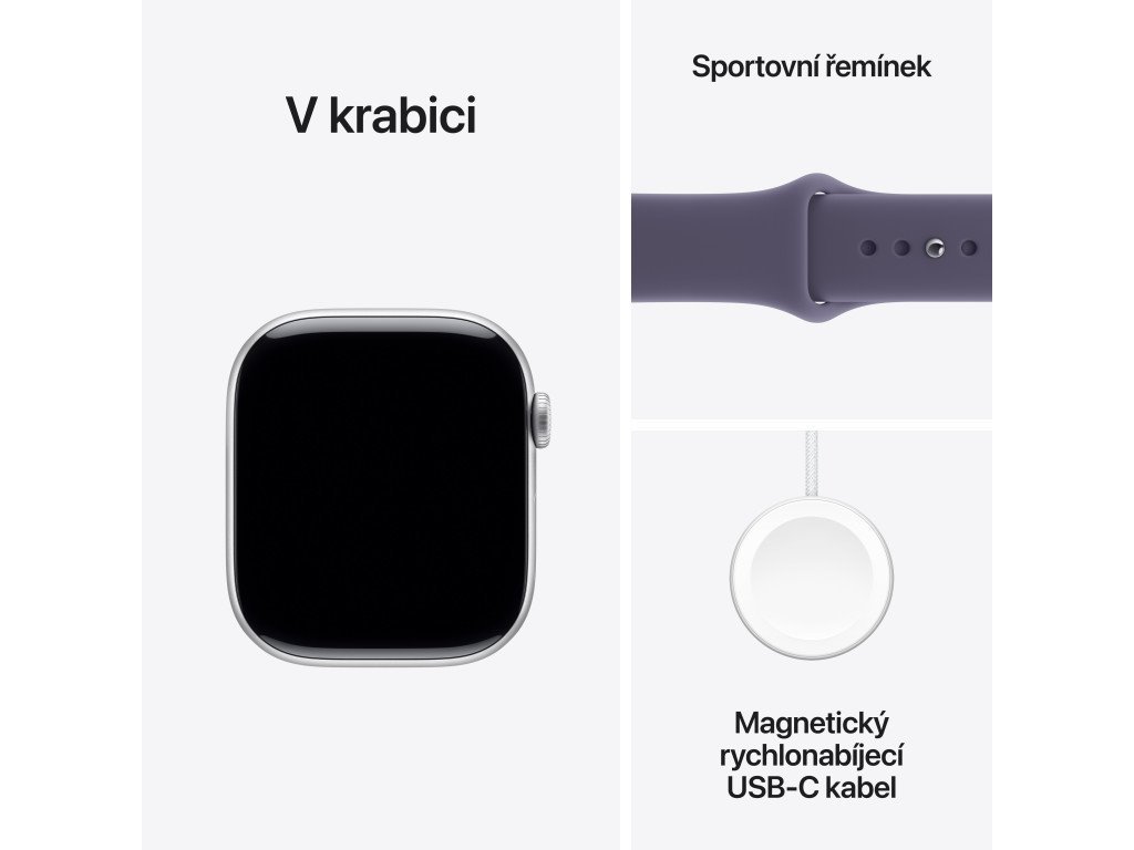 Apple Watch Series 11 GPS 42mm Silver Aluminium Case with Purple Fog Sport Band - M/L Nevíte kde uplatnit Benefity obecně, zeptej se info@megabike-cyklo.cz