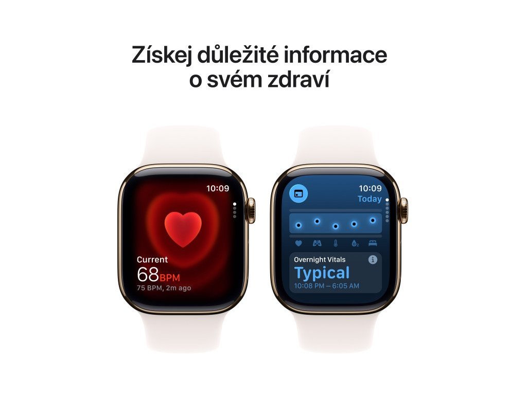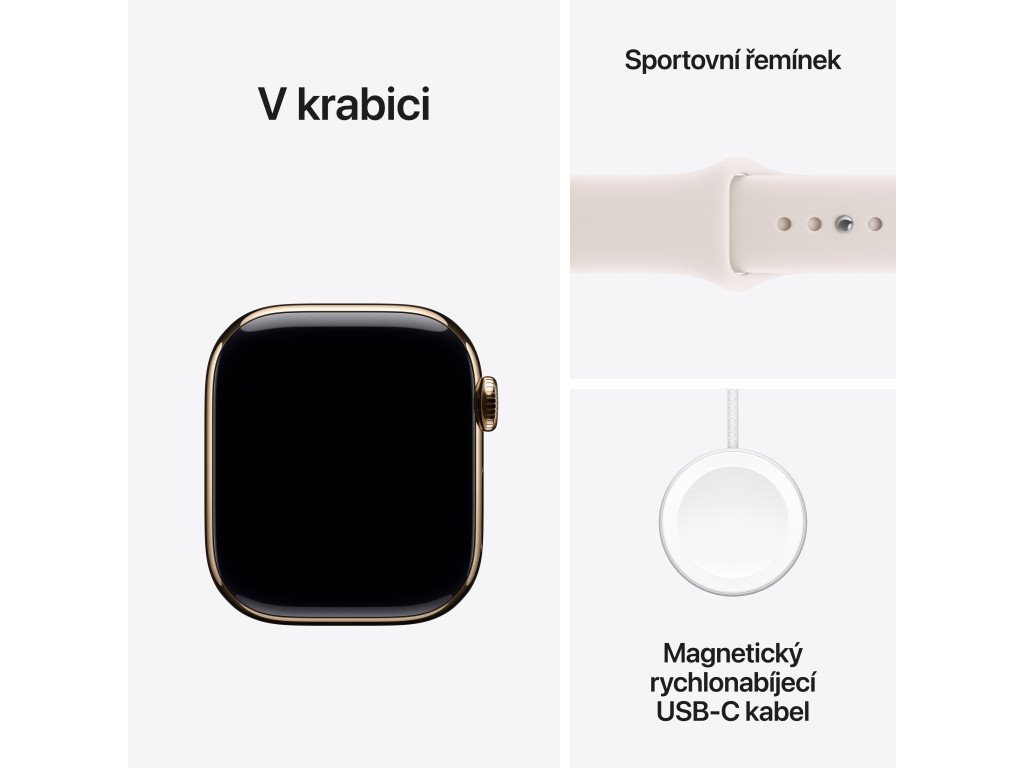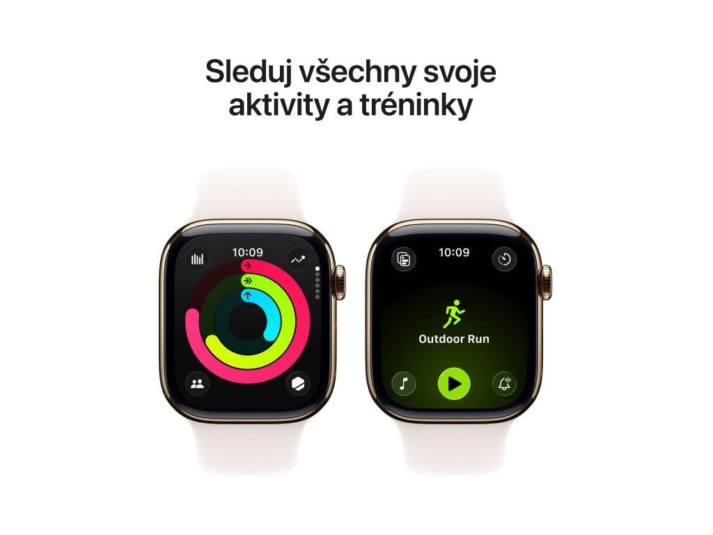 Apple Watch Series 11 GPS + Cellular 42mm Gold Titanium Case with Light Blush Sport Band - M/L Nevíte kde uplatnit Benefity obecně, zeptej se info@megabike-cyklo.cz