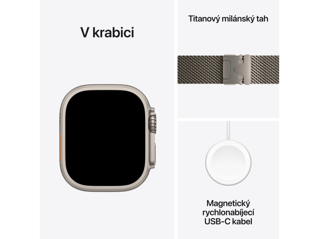 Apple Watch Ultra 3 GPS + Cellular 49mm Natural Titanium Case with Natural Titanium Milanese Loop - Medium Nevíte kde uplatnit Benefity obecně, zeptej se info@megabike-cyklo.cz