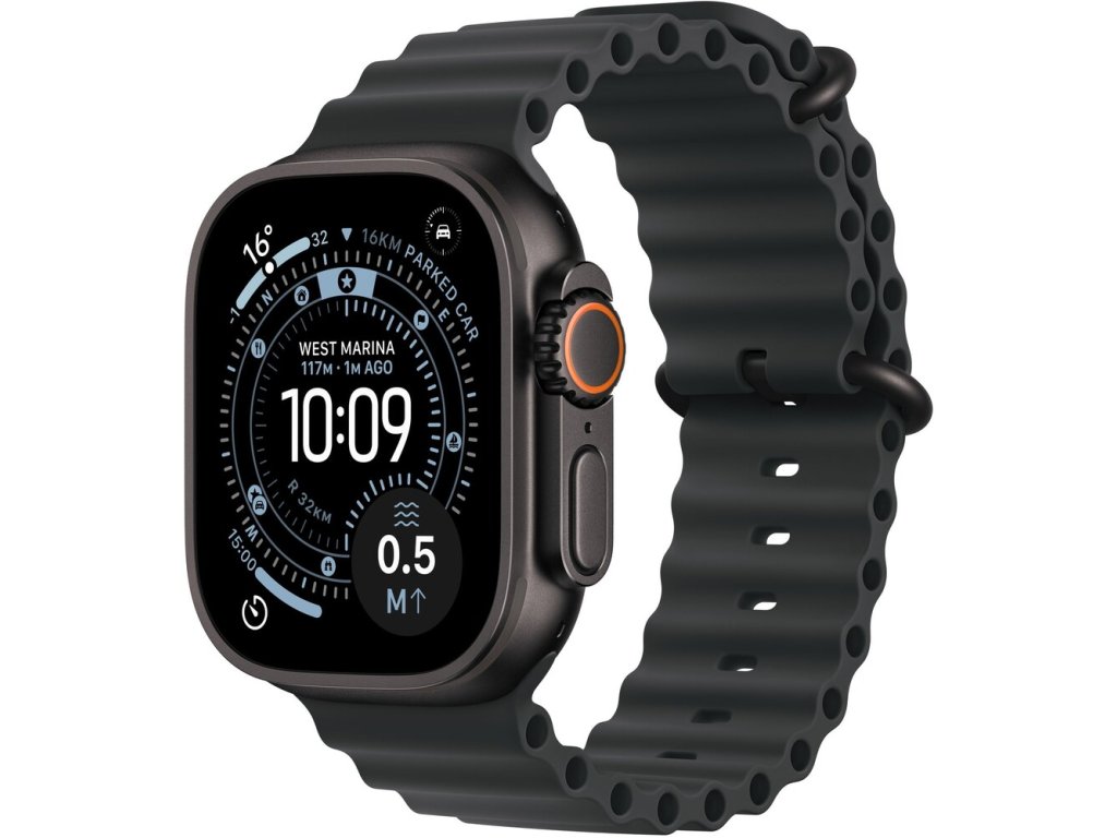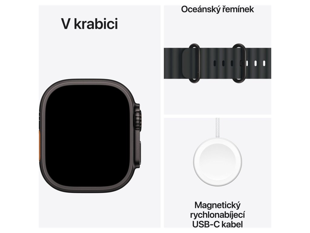 Apple Watch Ultra 3 (2025) 49mm Černý titan s černým oceánským řemínkem Nevíte kde uplatnit Benefity obecně, zeptej se info@megabike-cyklo.cz
