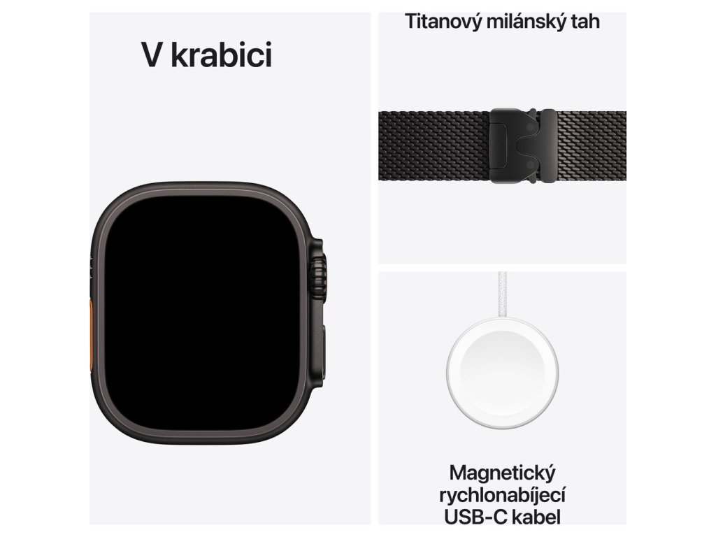 Apple Watch Ultra 3 (2025) 49mm Černý titan s černým titanovým milánským tahem M Nevíte kde uplatnit Benefity obecně, zeptej se info@megabike-cyklo.cz