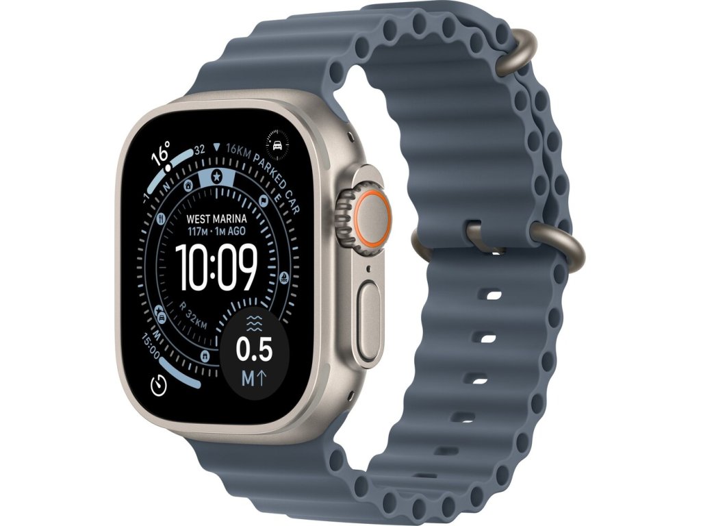 Apple Watch Ultra 3 (2025) 49mm Přírodní titan s ocelově modrým oceánským řemínkem Nevíte kde uplatnit Benefity obecně, zeptej se info@megabike-cyklo.cz