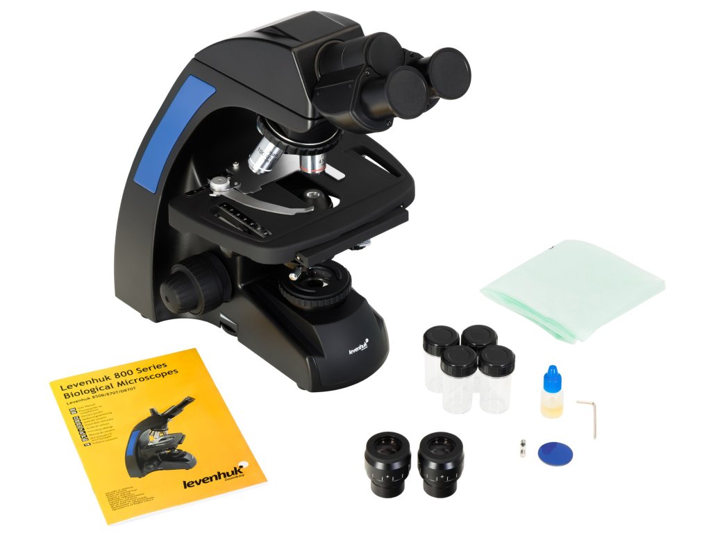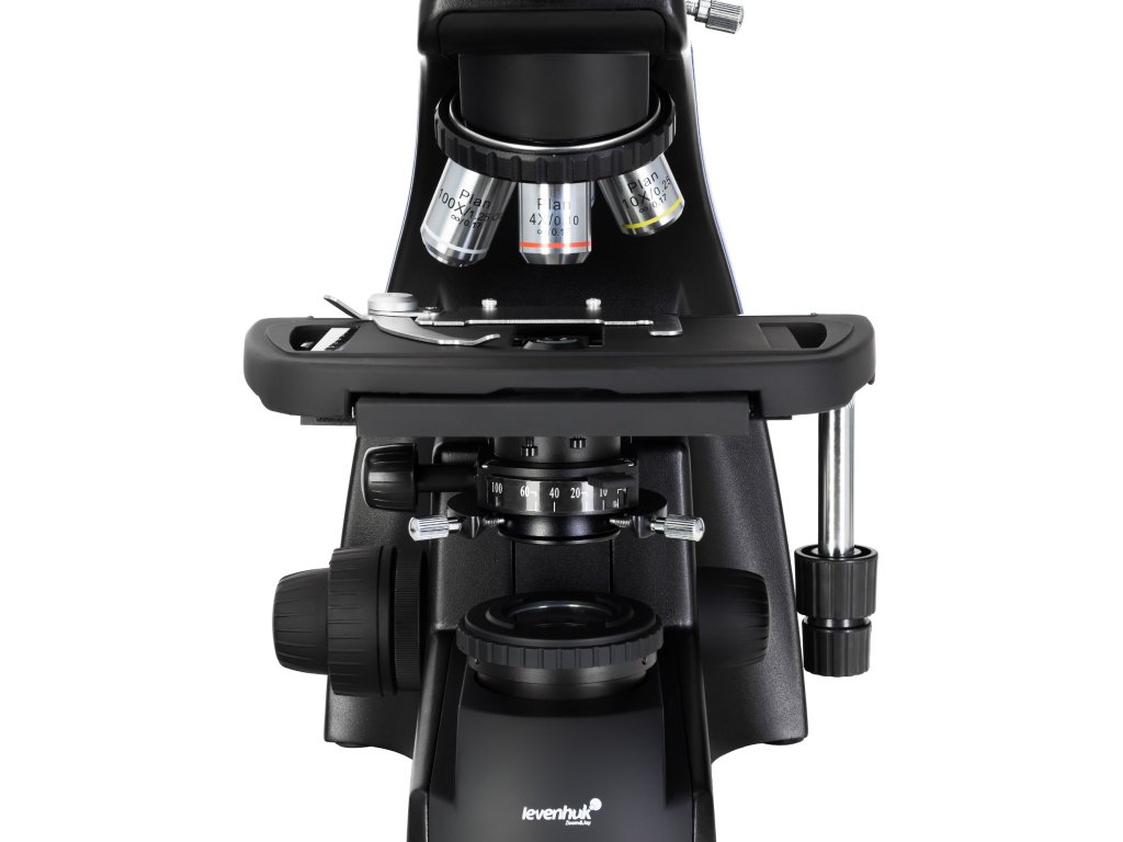 Biologický binokulární mikroskop Levenhuk 850B je ideální k biochemickému, patologicko-anatomickému, cytologickému, hematologickému, urologickému, dermatologickému, biologickému a obecně klinickému výzkumu v laboratořích libovolné lékařské instituce. Umožňuje zkoumání pomocí metody jasného i temného pole.Vybaven binokulární otočnou hlavicí. Revolvingový nosič umožňuje použití čtyř objektivů. Hlavice má sklon 30 stupňů a je otočná kolem své osy v rozsahu 360 stupňů. Mikroskop je vybaven klasickým Koehlerovým systémem osvětlení s nastavením clony zorného pole a apertury.