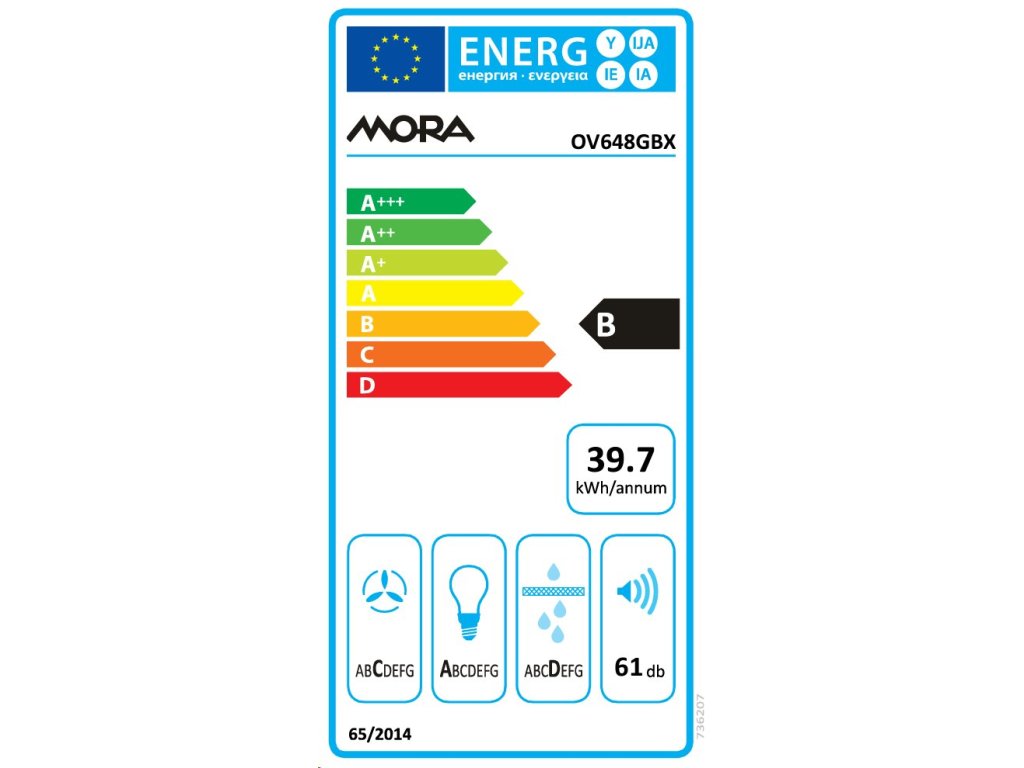 Základní popisKomínový odsavač Mora OV 648 GBX v elegantním černo-nerezovém provedením s tlačítkovým ovládáním, 3 výkonovými rychlostmi odstraní dokonale nejen mastnotu, ale i pachy. Jedinečné kovové tukové filtry jsou vylepšené speciální polyuretanovou pěnou, která eliminuje až 98 % všech tukových a jiných nečistot. Pěna zároveň zachovává perfektní absorpční účinnost. Inovativní perimetrický odsávací systém přesměruje odsávání vzduchu z centrální části do vnějších rohů odsavače par. Tento přístup nepřetěžuje motor, optimalizuje spotřebu energie, snižuje hluk a odsávání vzduchu je podstatně účinnější. Díky zkosené přední části budete mít dostatek prostoru pro vaření, takže se nemusíte obávat, že narazíte hlavou na hranu. LED osvětlení perfektně osvítí varnou plochu, takže budete mít dokonalý přehled nad připravovaným pokrmem. S maximálním výkonem 430 m3/h a hlučností 61 dB bude neocenitelným pomocníkem ve Vaší domácnosti. Digestoř lze použít i na vnitřní cirkulaci vzduchu, stačí dokoupit uhlíkové filtry. Samozřejmostí je i zpětná klapka. Potěší Vás i možnost mýt kovové tukové filtry v myčce a tím udržovat odsavač v perfektním stavu bez zbytečné námahy.