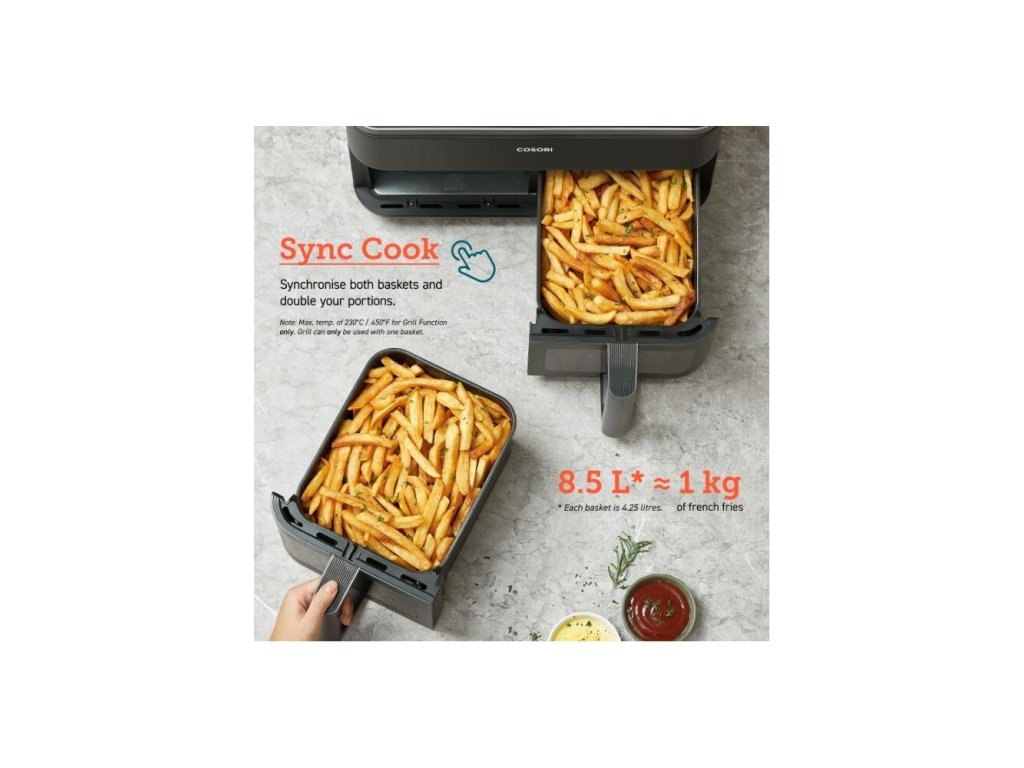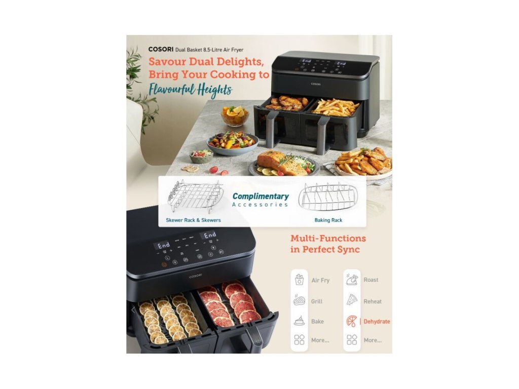 Cosori Dual Basket horkovzdušná fritéza 8,5l + 5x špíz a rošt černá Nevíte kde uplatnit Benefity obecně, zeptej se info@megabike-cyklo.cz