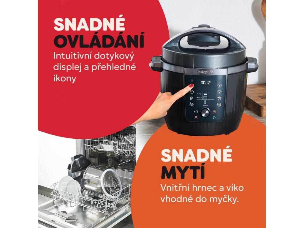 S objemem 5,7 l uvaříte pohodlně až 6 porcí – ideální pro rodinné obědy, oslavy i přípravu jídla na více dní. A kdyby vám docházela inspirace, v aplikaci Instant Connect najdete přes 3?000 receptů na každý den i roční období.