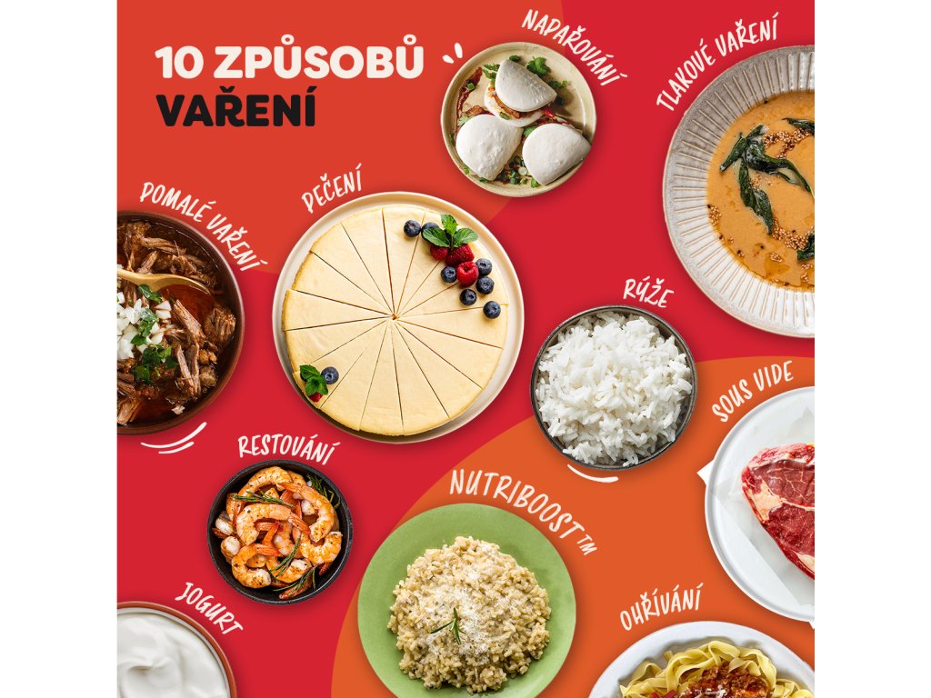 - 10 funkcí v jednom – od tlakového vaření po pečení