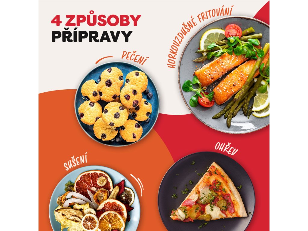 Objem 5 l – vejde se celé kuře (~1,5 kg) nebo 750g hranolek