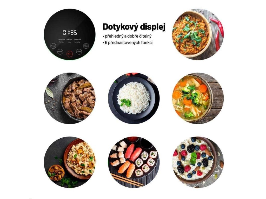 6 nastavitelných režimů – Quick cook, Slow cook, Claypot rice, Porridge, Soup, Reheating.
