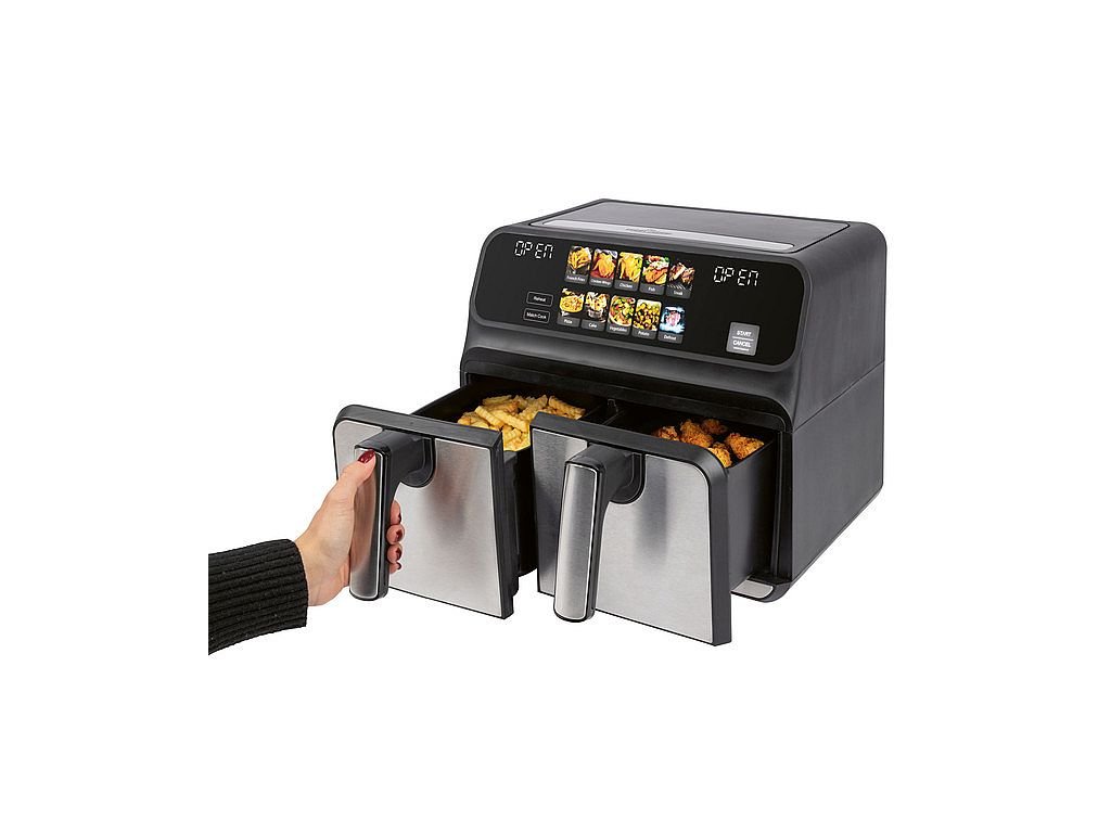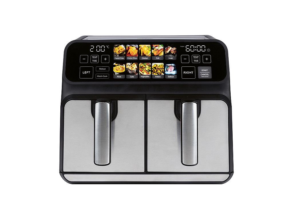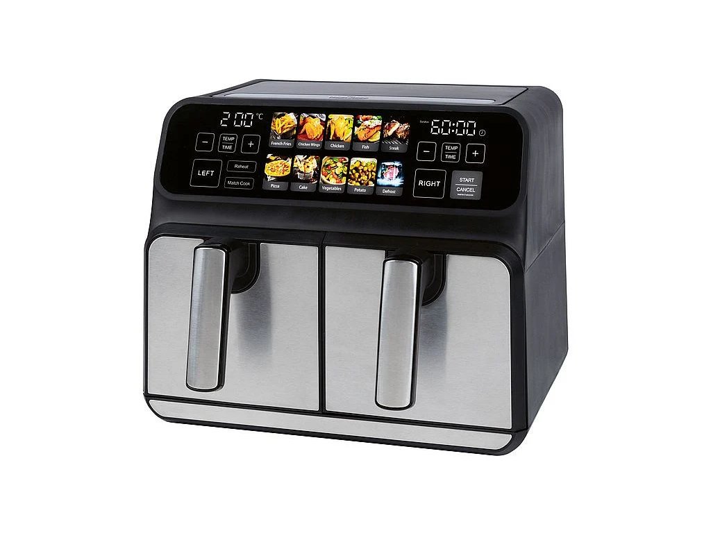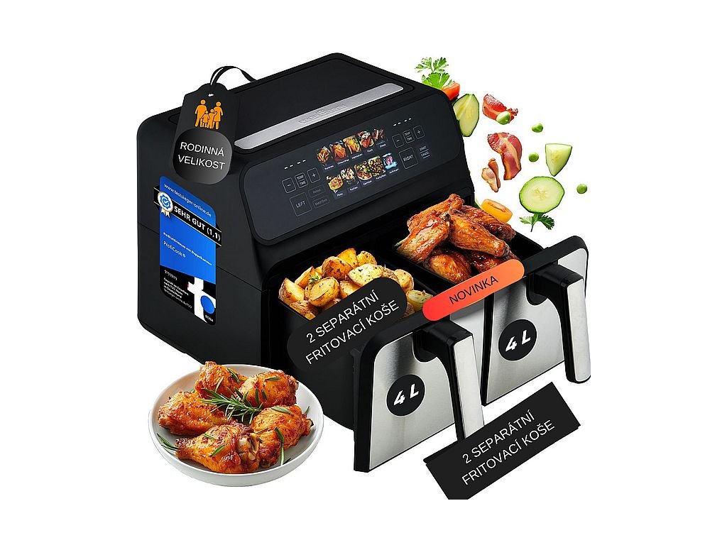 Revoluční vaření bez tuku a oleje s horkovzdušou fritézou FR 1287 H od značky ProfiCook. Objevte horkovzdušnou fritézu s kapacitou 8 litru, 2x4L, ideální pro zdravé a rychlé vaření. Tento moderní pomocník je navržen s přední částí z nerezové oceli, která zaručuje nejen elegantní vzhled, ale i snadnou údržbu a dlouhou životnost.Hlavní Vlastnosti: