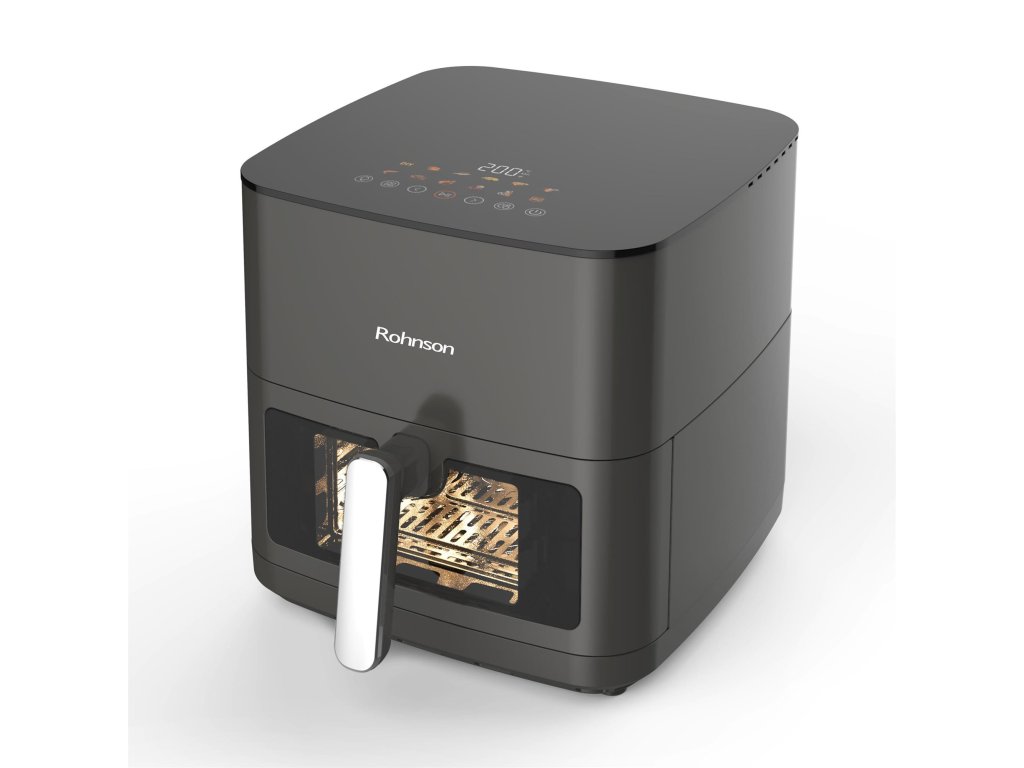 Horkovzdušná fritéza s horním a spodním topným tělesem a kovovým pláštěm