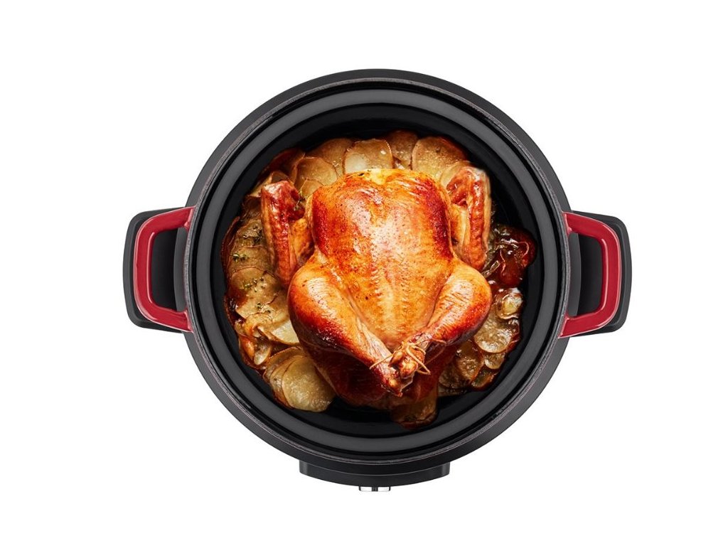 Multifunkční hrnec 9v1 • vnitřní smaltovaný litinový hrnec s pokličkou • ovládací tlačítka na předním panelu v češtině • ideální pro pomalé vaření, dušení, smažení, restování nebo pečení • vhodný do elektrické, plynové i horkovzdušné trouby na pečení a zapékání až do 250°CMultifunkční hrnec s elegantním designem