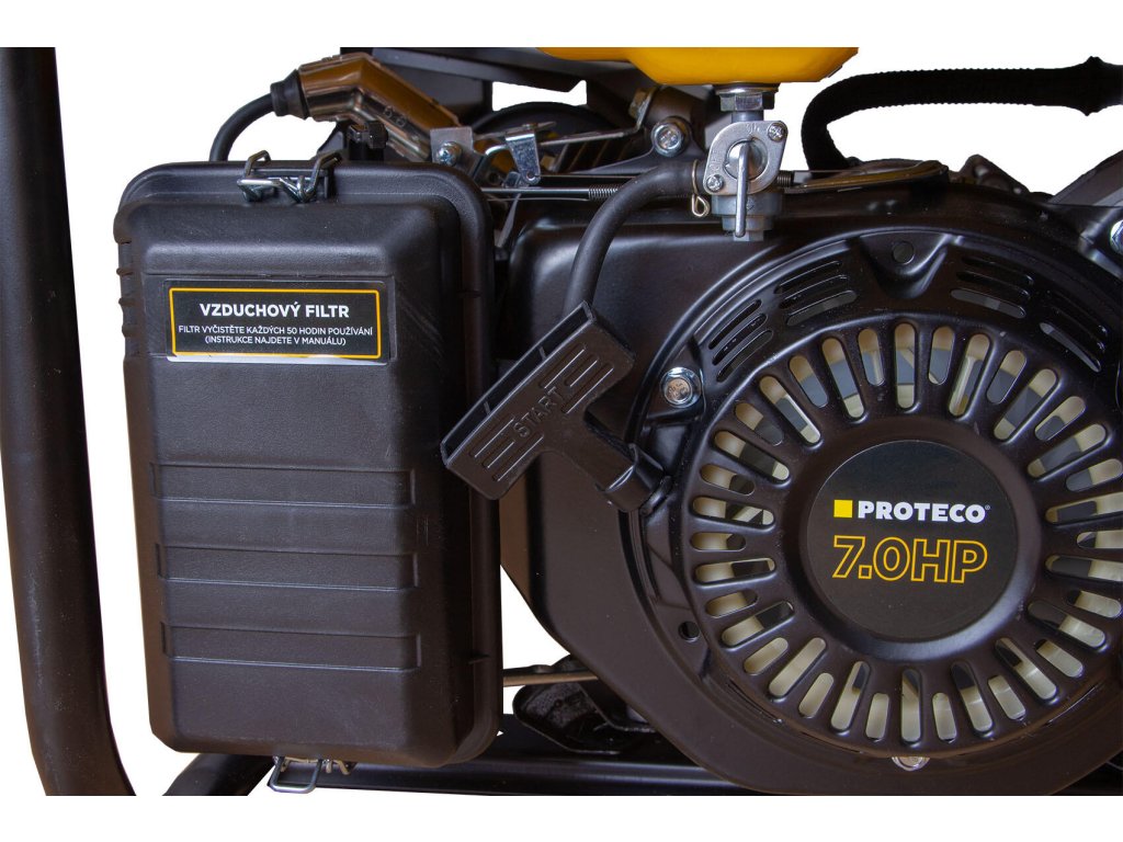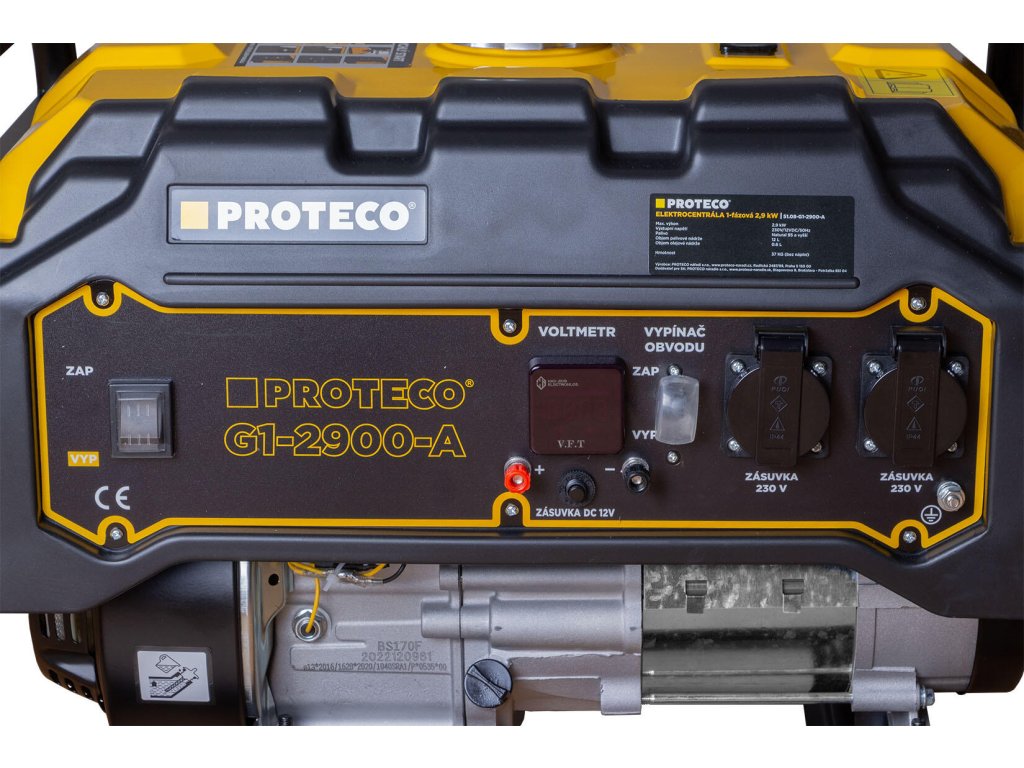 Benzínová elektrocentrála (generátor) PROTECO s maximálním výkonem 2900 W je ideálním typem elektrocentrály, který nesmí chybět v žádné domácnosti! Disponuje systémem elektrické regulace výstupního napětí AVR, který umožňuje připojení jemných elektronických přístrojů (např. TV přijímače, počítače atd.). Elektrocentrála je vybavena ručním startérem, digitálním voltmetrem pro měření vstupního napětí, automatickou kontrolou hladiny oleje a jističem pro ochranu před přetížením. V generátoru je zabudovaná pohonná jednotka o objemu 212 ccm a výkonu 7 HP. Elektrocentrála má nádrž o objemu 15 litrů, s níž při 50% zatížení vydrží přes 12 hodin v nepřetržitém provozu na jednu nádrž. Výhody a charakteristické znaky: - Až 17 hodin nepřetržitého provozu - Systém AVR - automatická regulace výstupního napětí - Max. výkon 2 900 W - Trvalý výkon 2 600 W - Obsah 212 cm3 - Zásuvky - 2x 230V AC + 1x 12V DC - Digitální voltmetr pro měření vstupního napětí - Kontrola hladiny oleje - Jistič pro ochranu přetížení - Ruční startér - Objem nádrže 12l - Dodáno bez náplní, před prvním startem je nutné nalít olej!Při platbě penězi je možné dostat zajímavou nabídku neboli akční cenu a tu Vám rádi uděláme když napíšete na info@megabike-cyklo.cz