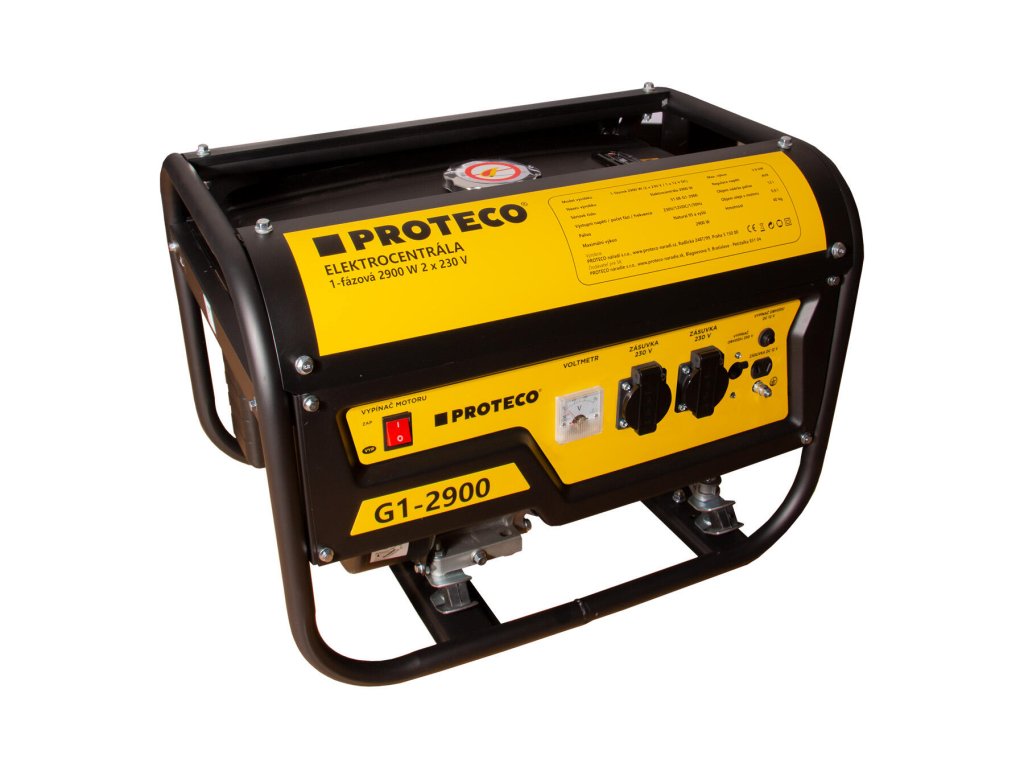 Benzínová elektrocentrála (generátor) PROTECO s maximálním výkonem 2900 W je ideálním typem elektrocentrály, který nesmí chybět v žádné domácnosti! Disponuje systémem elektrické regulace výstupního napětí AVR, který umožňuje připojení jemných elektronických přístrojů (např. TV přijímače, počítače atd.). Elektrocentrála je vybavena ručním startérem, voltmetrem pro měření vstupního napětí, automatickou kontrolou hladiny oleje a jističem pro ochranu před přetížením. V generátoru je zabudovaná pohonná jednotka o objemu 212 ccm a výkonu 7 HP. Elektrocentrála má nádrž o objemu 15 litrů, s níž při 50% zatížení vydrží přes 12 hodin v nepřetržitém provozu na jednu nádrž. Výhody a charakteristické znaky: - Až 17 hodin nepřetržitého provozu - Systém AVR - automatická regulace výstupního napětí - Max. výkon 2 900 W - Trvalý výkon 2 600 W - Obsah 212 cm3 - Zásuvky - 2x 230V AC + 1x 12V DC - Voltmetr pro měření vstupního napětí - Kontrola hladiny oleje - Jistič pro ochranu přetížení - Ruční startér - Objem nádrže 15l - Dodáno bez náplní, před prvním startem je nutné nalít olej!Při platbě penězi je možné dostat zajímavou nabídku neboli akční cenu a tu Vám rádi uděláme když napíšete na info@megabike-cyklo.cz