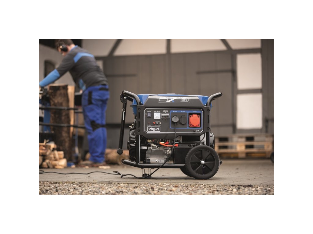 SG 7100x - Rámová elektrocentrála 5500 W s regulací AVR a elektrostartem Elektrocentrála SG 7100x je skvěle vybavený a výkonný stroj, který vám poslouží v mnoha situacích. Stále existuje mnoho oblastí, kde proud není k dispozici, jindy hrozí při výpadku energie velké hmotné ztráty, lidé potřebují elektřinu u svých zahradních domků, chatek, karavanů, lodí, nezbytný je přísun energie na stavbách. Elektrocentrála SG 7100x je silný model s velmi širokým záběrem použití. Trvalý výkon 2000 W pro výstup 230 V a 5000 W pro výstup 400 V již dává uživateli možnost napájet většinu běžně používaných spotřebičů nebo strojů s elektromotorem. Konstrukce Pro kvalitu elektrocentrály je klíčovým prvkem motor a alternátor. Scheppach používá jen kvalitní motory a alternátory prověřené v dlouhodobých zátěžových testech, vybavené špičkovým napájením s automatickou regulací AVR (Automatic Voltage Regulator), takže nepoškodí ani spotřebiče náročnější na kvalitu napájecího proudu. Kvalitní měděné vinutí zase zaručuje delší životnost a lepší elektrickou vodivost. Velká nádrž 25 l s ukazatelem paliva je chráněna rámovou konstrukcí a dovolí uživateli mnohahodinový bezstarostný provoz. Velká kola a výklopné přepravní madlo výrazně ulehčují transport stroje. Centrála je standardně vybavena komfortním elektrickým startováním, baterie je součástí dodávky. Ve výbavě nechybí ani voltmetr, dvě zásuvky na 230 V, jedna zásuvka na 400 V, jedna zásuvka na 12 V, ochrana proti přetížení a kontrola nízké hladiny oleje. Servisní zázemí Scheppach svým zákazníkům zároveň poskytuje širokou servisní síť, jejíž nedílnou součástí je i naše společnost. Využijte prodloužené záruky Bližší informace o záručních podmínkách naleznete zde. Případné bezpečnostní pokyny, výstrahy a upozornění jsou součástí návodu k obsluze, který je k dispozici v sekci KE STAŽENÍ. Kontaktní údaje výrobce / dovozce / zplnomocněného zástupce výrobce v EU: Scheppach GmbH Günzburger Str. 69, 89335 Ichenhausen, Germany email: service@scheppach.comPři platbě penězi je možné dostat zajímavou nabídku neboli akční cenu a tu Vám rádi uděláme když napíšete na info@megabike-cyklo.cz