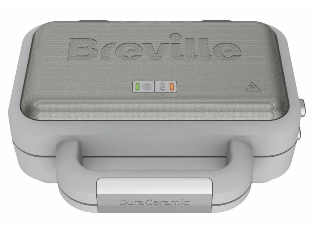 Sendvičovač Breville kombinuje elegantní vzhled se skvělou funkčností. Je vybaven nejmodernějším nepřilnavým povlakem DuraCeramic, který je odolnější proti poškrábání a čtyřikrát trvanlivější než běžné nepřilnavé povrchy. Tento keramický povrch také díky kvalitnějšímu přenosu tepla zkracuje dobu přípravy až o 20% a samozřejmě je zcela bezpečný – neobsahuje žádné škodlivé látky jako PTFE nebo PFOA.