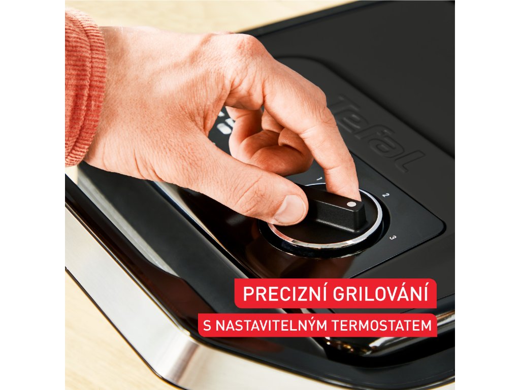 Nastavitelný termostat se 3 teplotami zajišťuje dokonale grilované maso, zeleninu a sendviče.