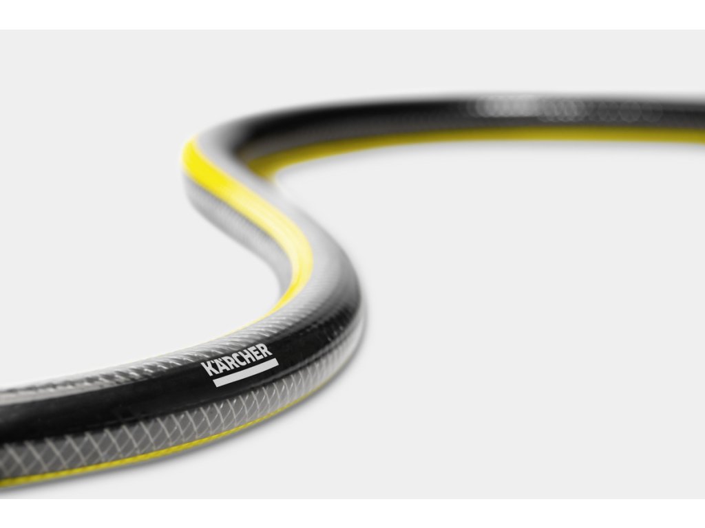 Nová zahradní hadice firmy Kärcher je vyrobena z kvalitní vícevrstvé tkaniny s vylepšenou přilnavostí, která přesvědčí robustností, pružností a odolností proti zlomení. Umožňuje konstantní průtok vody a přilne podstatně lépe k ruce.Vnější vrstva odolná proti UV záření chrání materiál zavlažovací hadice. Mezivrstva nepropouštějící světlo se stará o to, aby se v hadici netvořily žádné řasy. I ve věcech teplotní odolnosti přesvědčí zahradní hadice 3/4" na celé čáře: