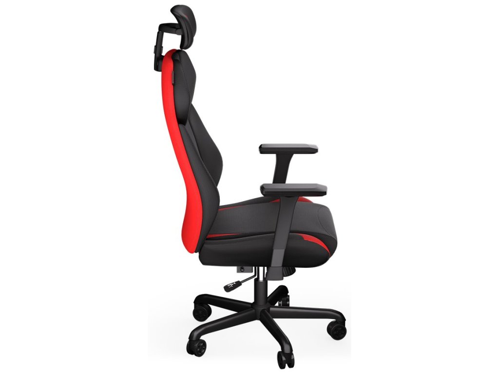 Robustní herní židle s atraktivním designem poskytuje dokonalou oporu a pohodlí i při dlouhém sezení u počítače. Je vyrobena z kvalitní prodyšné textilní látky a syntetické kůže. Nastavitelná výška židle, opěrky rukou nastavitelné ve všech směrech a úhel sklonu opěradla až 125° zajistí maximální komfort. Kolečka o průměru 60 mm jsou pokryta vrstvou odolného nylonu, který zároveň chrání podlahu před poškrábáním a snižuje hlučnost. Nosnost židle je až 120 kg.