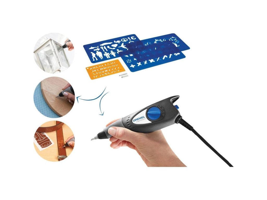 Gravírka DremelTato gravírka Dremel je lehký a kompaktní nástroj, který vám umožní přesně a kreativně gravírovat širokou škálu materiálů, jako je kůže, dřevo, sklo, kov a keramika. Díky seřízení zdvihu můžete snadno regulovat hloubku rytí, od jemných linek po hlubší drážky. Nářadí má pogumovanou rukojeť, což zajišťuje pohodlné a pevné držení i při delší práci.