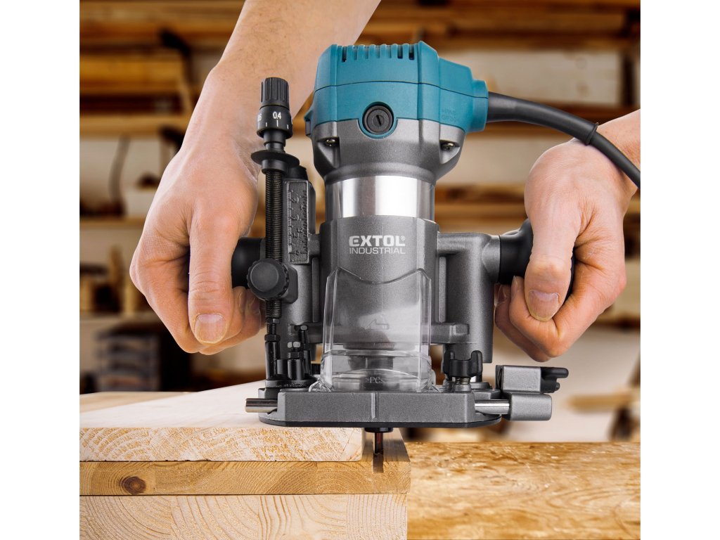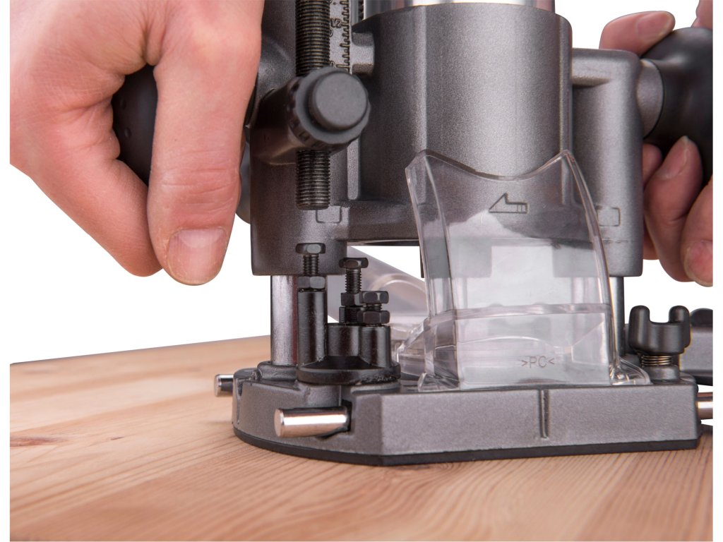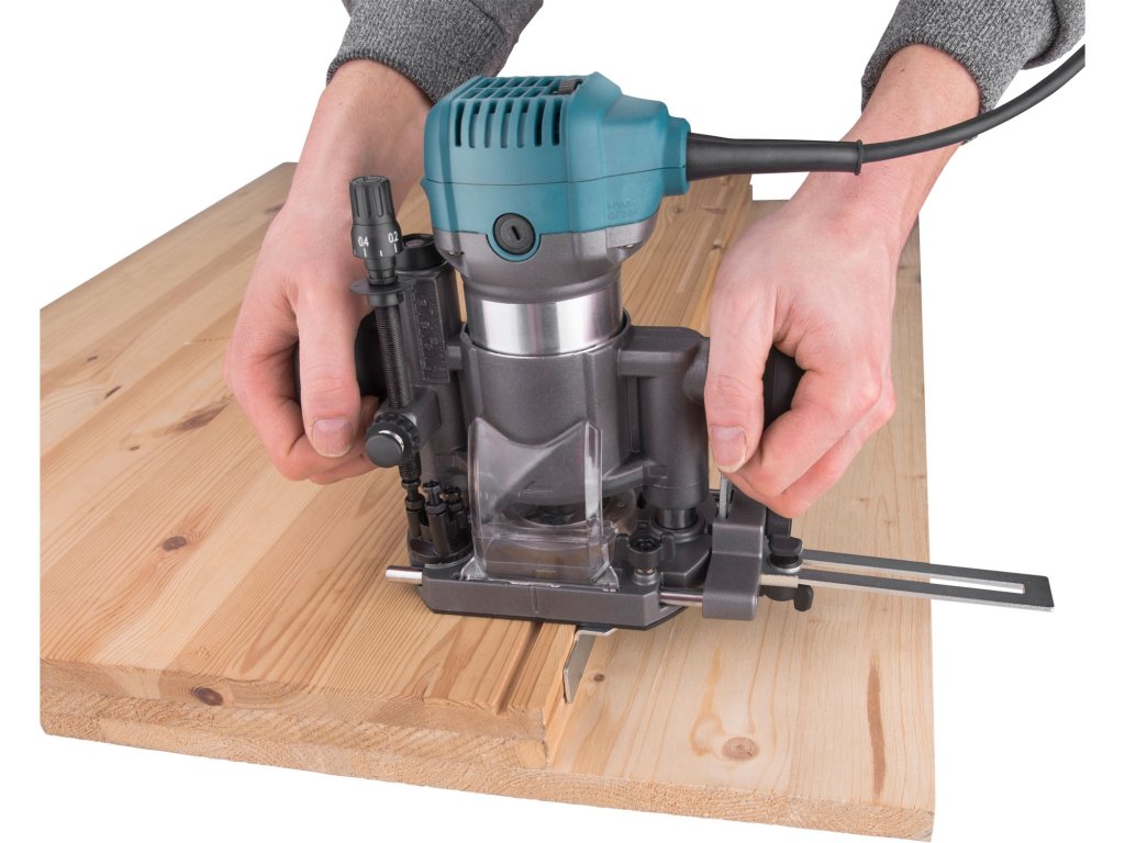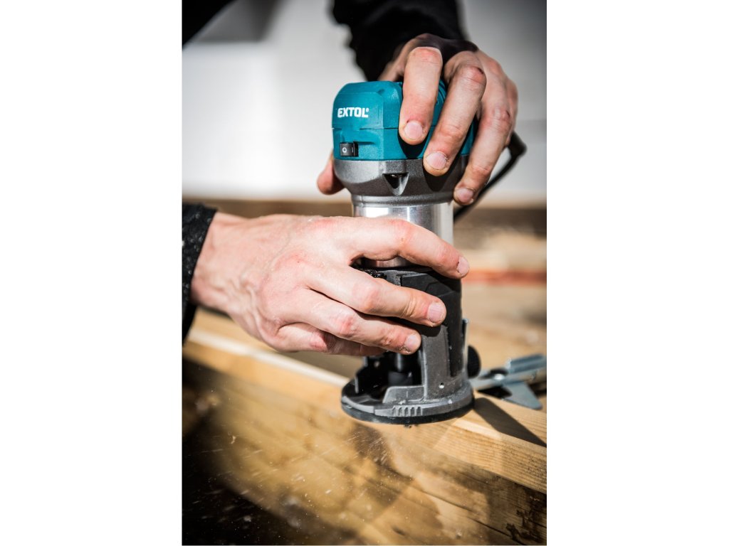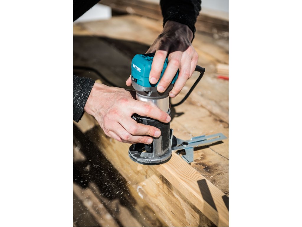 Frézka je určena k frézování hran, profilů, otvorů do dřeva s různými tvary v závislosti na tvaru použité frézy. Frézka může pracovat s frézami se stopkou 6 a 8mm. Srdcem frézky je silný 710W motor s regulací otáček v rozsahu 13000-33000/min, který umožňuje přizpůsobit rychlost typu materiálu. Dále je vybavena elektronickou kontrolou otáček, která jí umožňuje mít konstantní otáčky i při zatížení a funkcí "soft start" zajišťující hladký start bez nárazů. Pro přesnou práci je zanořovací základna vybavena hloubkovou zarážkou s možností přesného posunu v řádu desetin milimetru. Při práci s tvrdým dřevem můžete využít revolverovou zarážku pomocí, které si rozdělíte frézovanou hloubku do několika vrstev a postupně je budete odebírat. Balení obsahuje tři různé základny: zanořovací, jednoruční a základnu s rukojetí. Dále lze dokoupit předsazenou základnu vhodnou pro práce u stěn. Frézka lze snadno vyjmout ze základny a vložit do jiné základny v závislosti na prováděné práci. Tato modularita výrazně usnadňuje a zrychluje práci.- regulace otáček umožňuje přizpůsobit otáčky vzhledem ke stavu obráběného materiálu, což vede k lepšímu vzhledu a opracování
