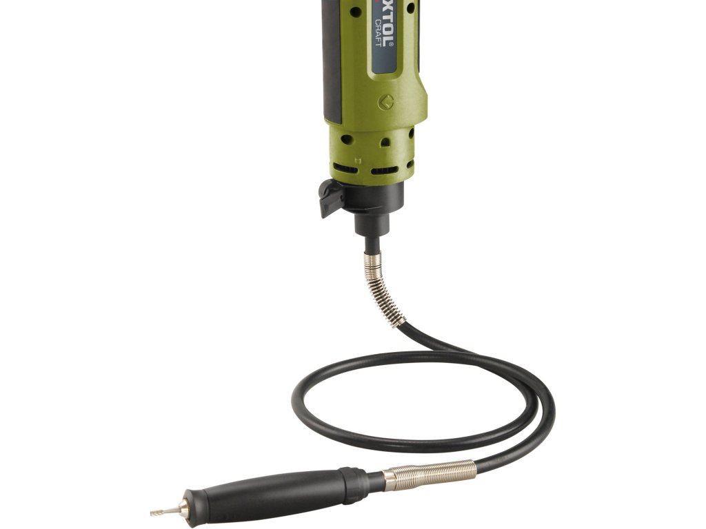 - pomocí přiloženého ohebného nástavce ji můžete používat jako přímou brusku na řezání, broušení, smirkování, leštění a rytí přesných tvarů do dřeva, plastu, kovu, skla, kamene…