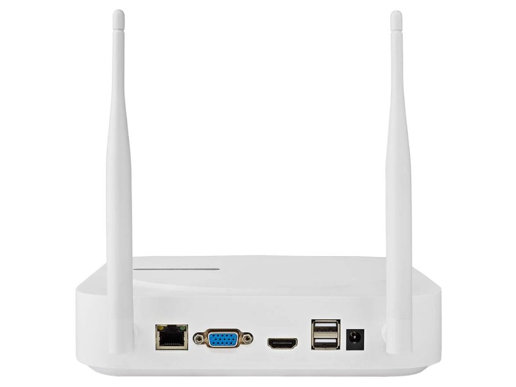 Záznamové zařízení pro až 4 bezdrátové IP kamery. Pro připojení k internetu je k dispozici konektor RJ-45. Aplikace v mobilním zařízení poté umožní pohodlný vzdálený přístup, pořizování záznamů, fotografií nebo upozornění v případě detekce pohybu. Pro ukládání záznamů lze využít pozici pro SATA pevný disk či externí úložiště připojené do jednoho ze dvou USB portů. Dekódování H.265 pomáhá ušetřit značné množství datového objemu. Zajisté potěší také možnost uložení záznamů na cloudové úložiště (na základě předplatného). Sadu je navíc možné volitelně rozšířit až o další dvě kamery Nedis SLNVRC01CWT do celkového počtu čtyř kamer.