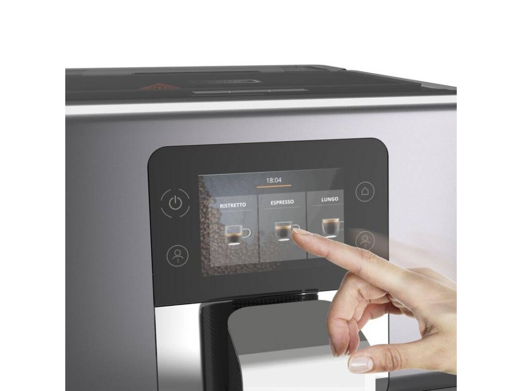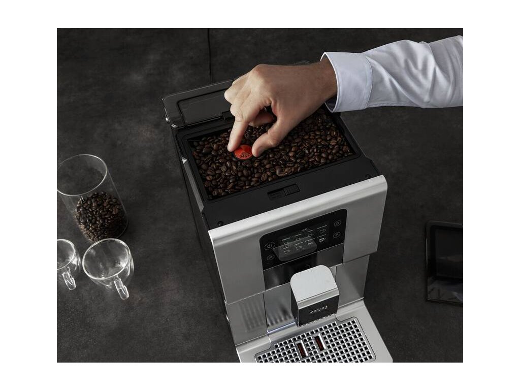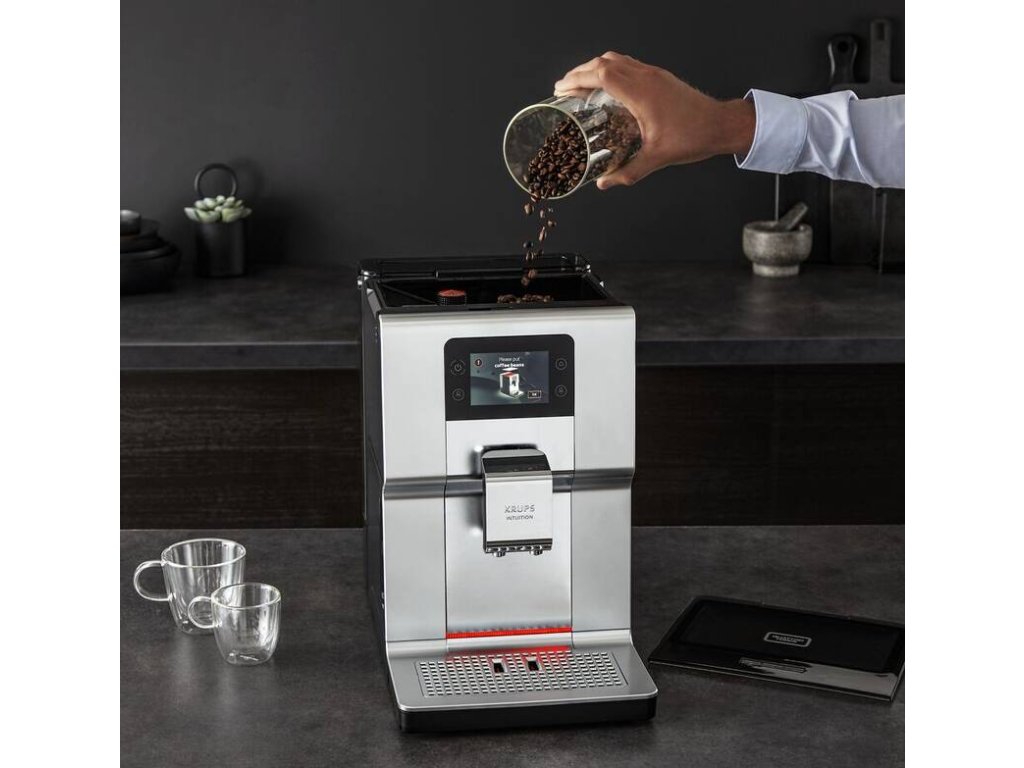 Prémiový automatický kávovar Krups Intuition Preference Plus EA875E10 vás intuitivně provede procesem přípravy kávy od samého začátku až k dokonalému šálku espressa nebo cappuccina. Jeho světelné indikátory usnadňují použití: červené podsvícení vás provede nutnou údržbou, zatímco barevně nastavitelné podsvícení vás povede přípravou nápoje — pro rychlou a intuitivní navigaci.Kávovar využívá technologii extrakce Quattro Force pro vynikající chuť kávy. Aktivní rychlé mletí zrn, hydraulické pěchování, optimalizovaná spařovací jednotka a samočisticím systém se postarají o vždy perfektní šálek.