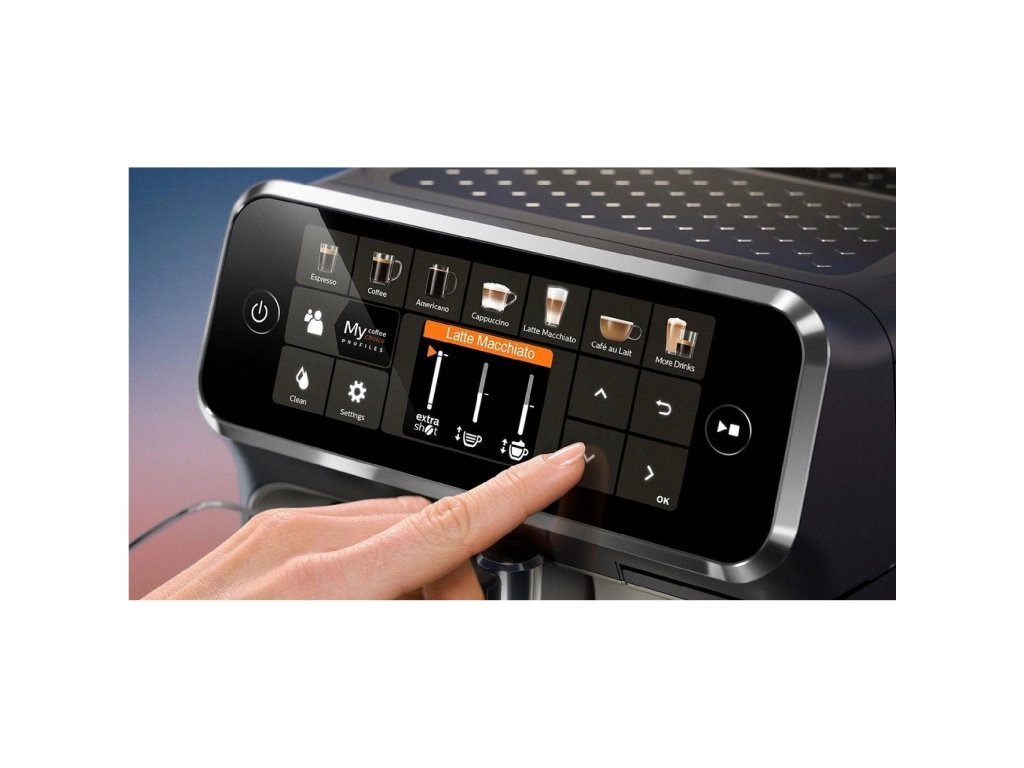 Plnoautomatické espresso Philips EP5441/50 se bude svým stylovým vzhledem vyjímat na každém místě. Jeho přehledný dotykový displej je maximálně intuitivní a v několika krocích si můžete snadno nastavit vše potřebné.