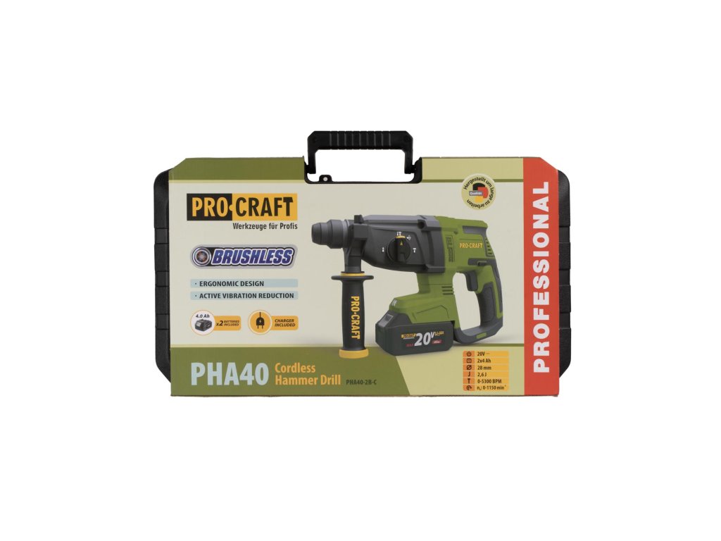 Výkonné aku vrtací kladivo Procraft PHA40 je navrženo pro vrtání, vrtání s příklepem a sekání. Je vybaveno bezuhlíkovým motorem a funkcemi pro efektivní a bezpečnou práci, což ho činí ideálním pomocníkem pro profesionální i domácí použití.