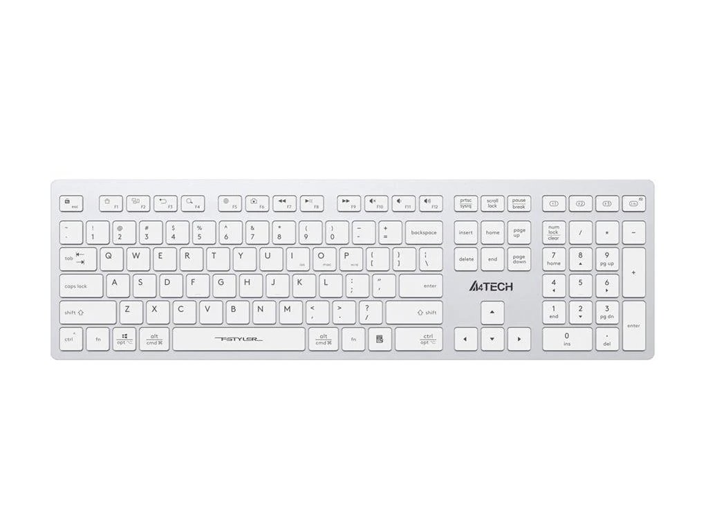 A4tech FBX50C, bezdrátová kancelářská klávesnice,BT/USB 2,4Ghz, bílá- Bezdrátová Scissor Switch klávesnice určena pro kancelářské a profesionální použití