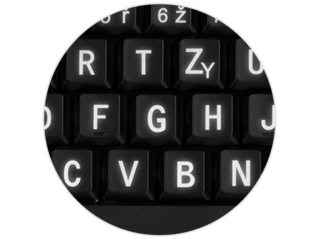 klávesnice, bíle podsvícená pomocí LED, konektor USB, velký font kláves pro pohodlné psaní, české rozložení, kabel 140cm