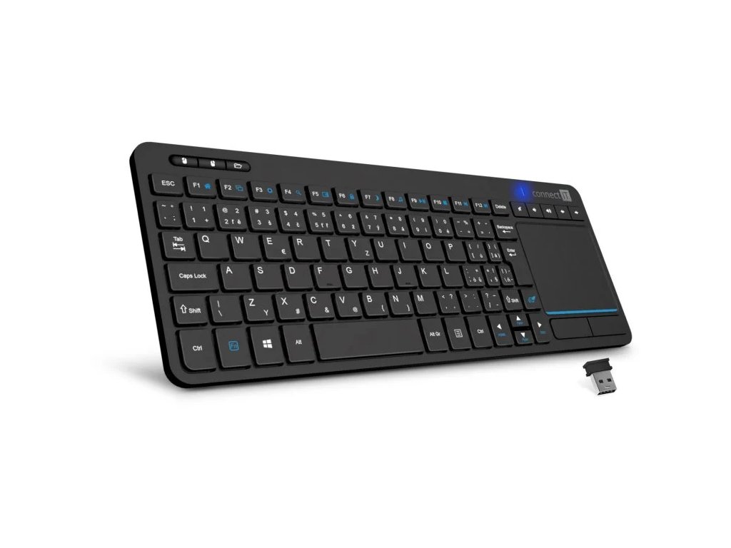 Bezdrátová, tichá klávesnice s touchpadem CONNECT IT "Touch" je ideální pro domácí použití, především k SmartTV a jiných chytrých zařízení. Díky zabudovanému touchpadu nepotřebujete samostatnou klávesnici a myš, a můžete tedy pohodlně ovládat Vaší chytrou televizi z pohodlí sedačky.