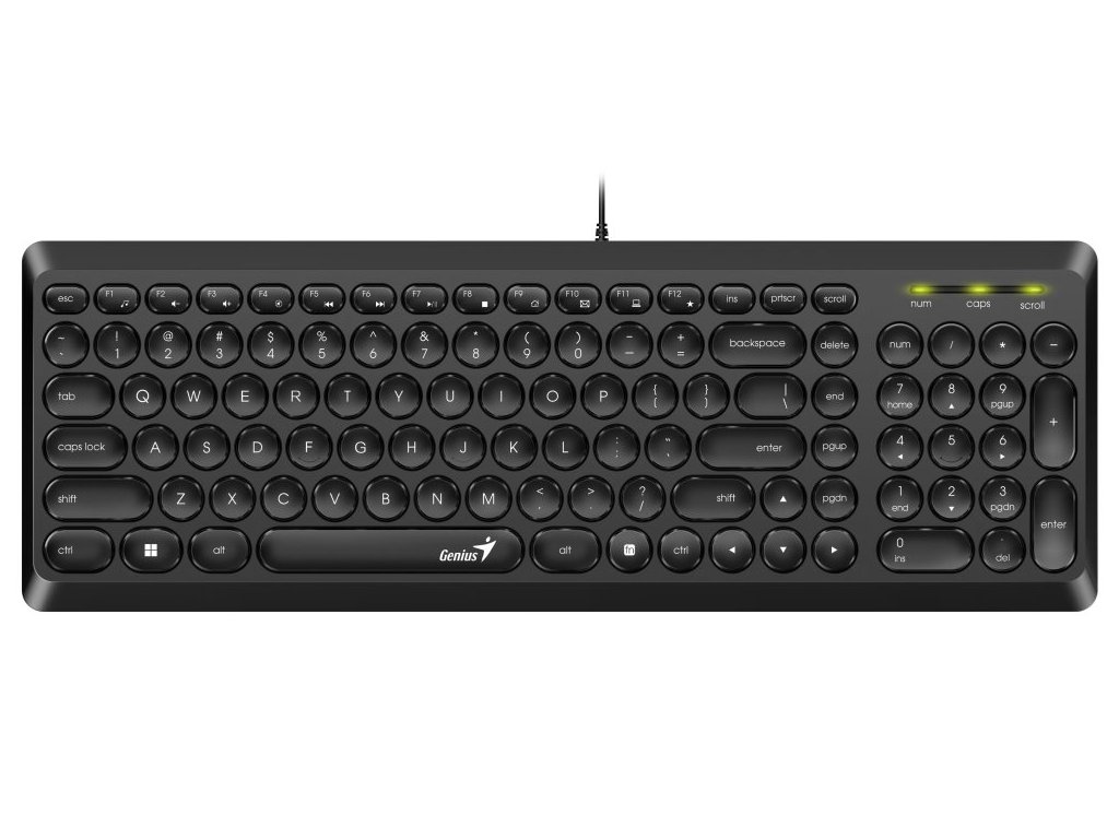 Drátová klávesnice v retro provedení s kulatými tlačítky je navržena tak, aby uživateli poskytla maximální komfort při každodenní práci. Tiché, nízkoprofilové klávesy poskytují efektivní a pohodlné psaní. Připojení k počítači je realizováno skrze USB port.