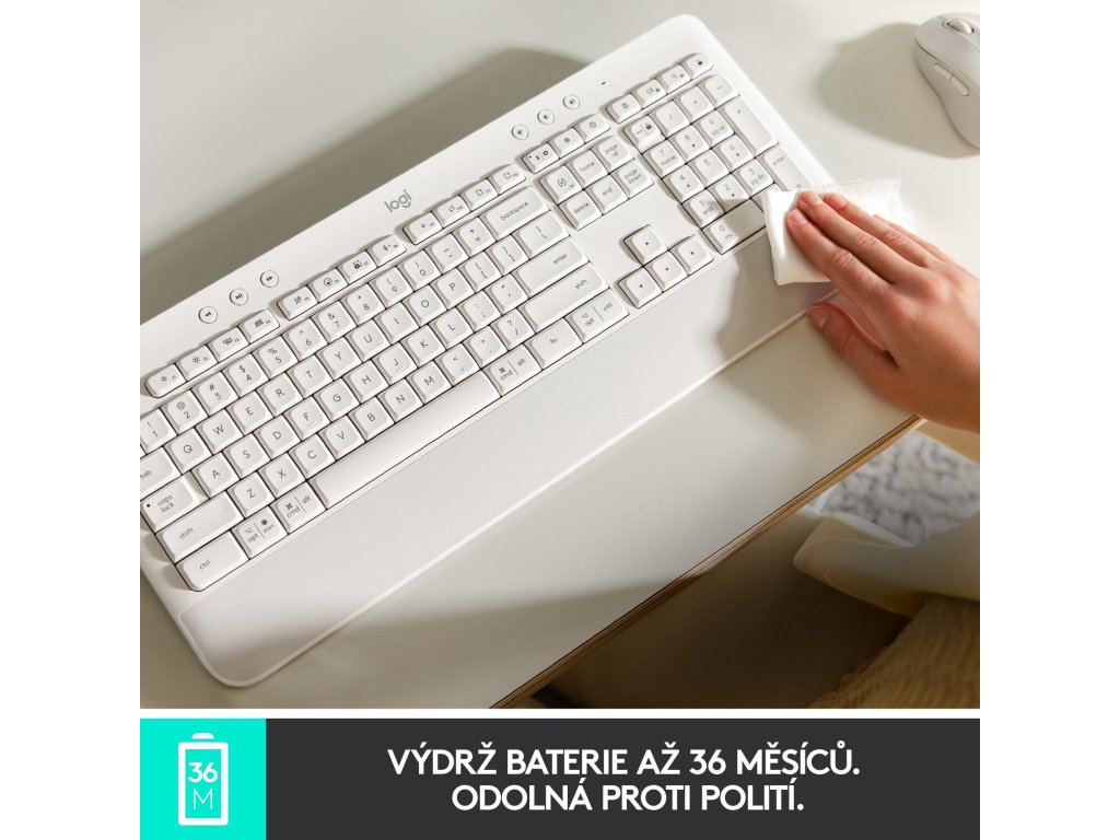 O svou klávesnici si nemusíte dělat starosti. Klávesnice Signature K650 bude fungovat tak dlouho, jak budete potřebovat, a obejde se bez nových baterií po dobu až 36 měsíců. Díky svému provedení se také pozoruhodně snadno čistí a je odolná proti polití (až 60 ml).