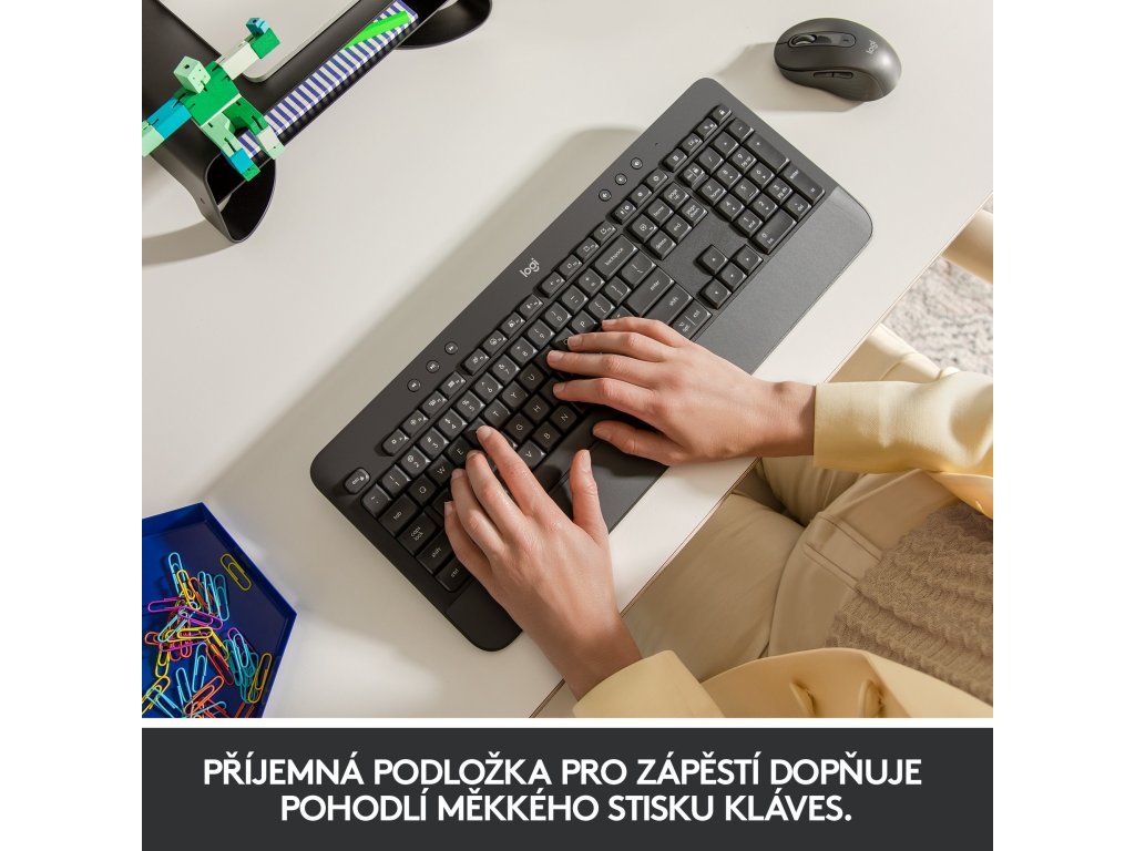 Dosáhněte vyšší produktivity a větší flexibility. Spojte klávesnici Signature K650 s myší Signature M650, stáhněte software Logi Options+ a zjistěte, jak snadno přizpůsobit svou klávesnici a myš.