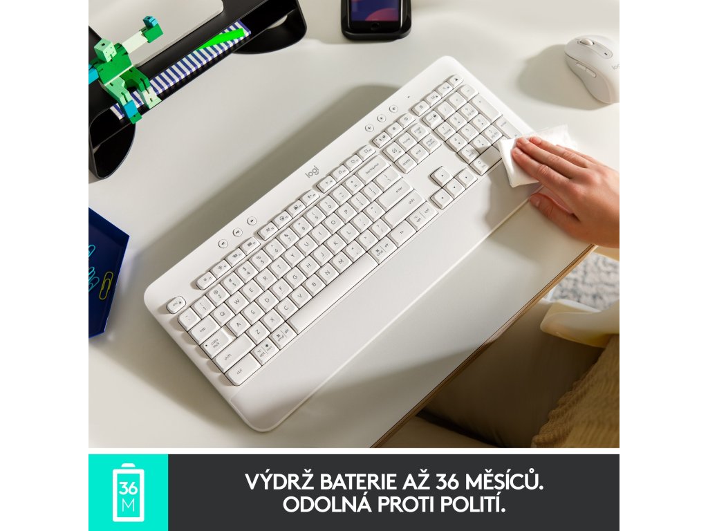 O svou klávesnici si nemusíte dělat starosti. Klávesnice Signature K650 bude fungovat tak dlouho, jak budete potřebovat, a obejde se bez nových baterií po dobu až 36 měsíců. Díky svému provedení se také pozoruhodně snadno čistí a je odolná proti polití (až 60 ml).