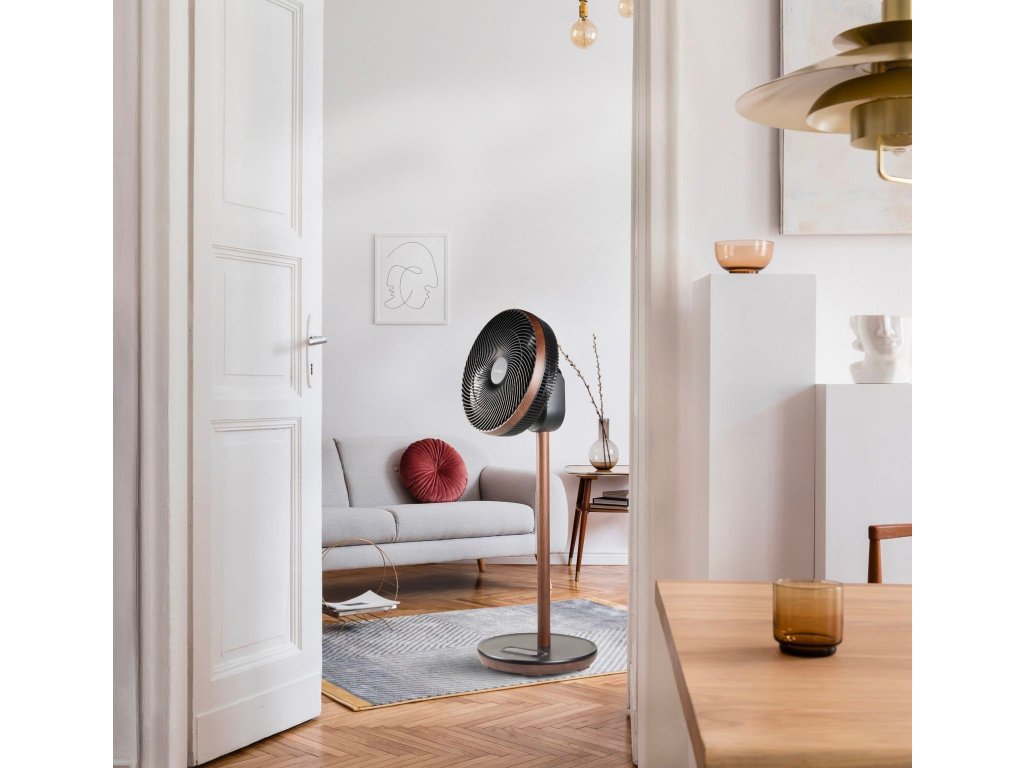 Moderní stojanový ventilátor v dekoru tmavého dřeva. Nejen design, ale hlavně technologické zpracování a vlastnosti jsou na ventilátoru DO8155 nadčasové. Novinkou v kategorii stojanových ventilátorů je možnost automatické 3D oscilace, kdy se vrtule naklápí v horizontálním i vertikálním směru najednou a tím zajistí opravdu dokonalou cirkulaci vzduchu v celé místnosti. Pro maximální komfort je zde dálkovéhé ovládání všech funkcí a také natavení časovače na automatické vypnutí.Oceníte i 9 lopatek na vrtuli s průměrem 33 cm, což zajištuje vysokou efektivitu (6,5 m/s) při zachování nízké hlučnosti. Výběr nastavení ventilace z 9 rychlostí včetně ultra tichého "dětského režimu" nebo i TURBO režimu.